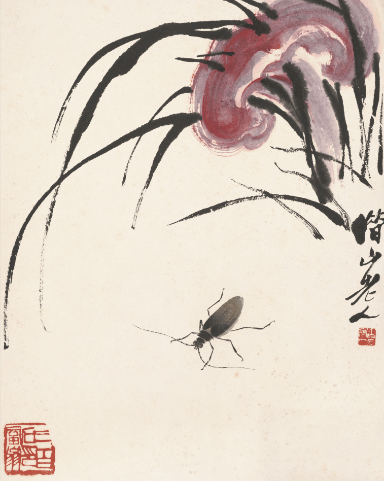 《灵芝、草和天牛》(《工虫画册精34×27cm品》八开之五) 齐白石 1949年 北京画院藏