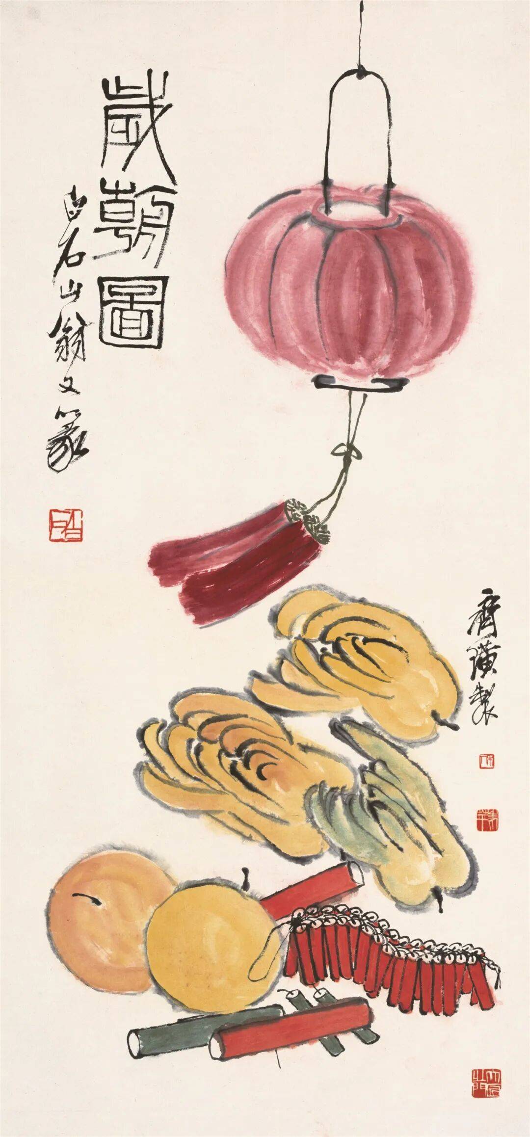 《岁朝图》齐白石 118.5×55cm 北京画院藏