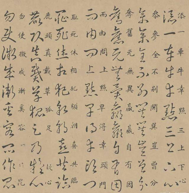 它开篇以“草圣最为难,龙蛇竞笔端。毫厘虽欲辨,体势更须完”,便开宗明义点出草书创作的核心 —— 既要分辨细微差别,更要保持体势完整。“即脚犹如恐,还身附近迁”“步观牛引足,羞见羊踏田” 等歌诀,则以意象化的表达,将抽象的笔法转化为可感知的画面,让学习者在记忆中构建起笔画的形态与位置意识。这种将深奥书法知识融入韵律的呈现方式,不仅打破了技法学习的枯燥,让我们对草法的认识更轻松一些。