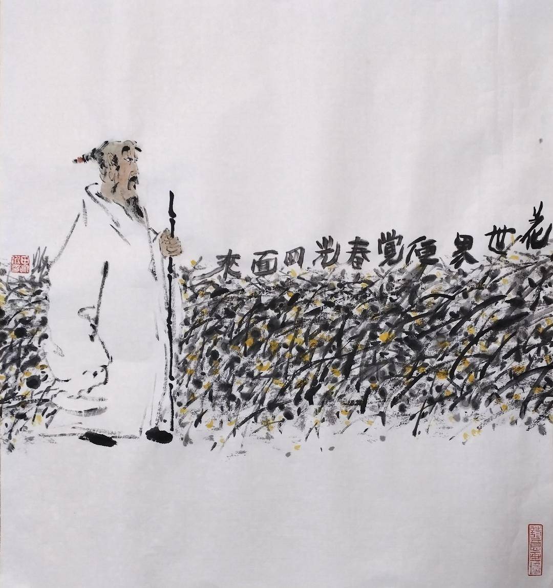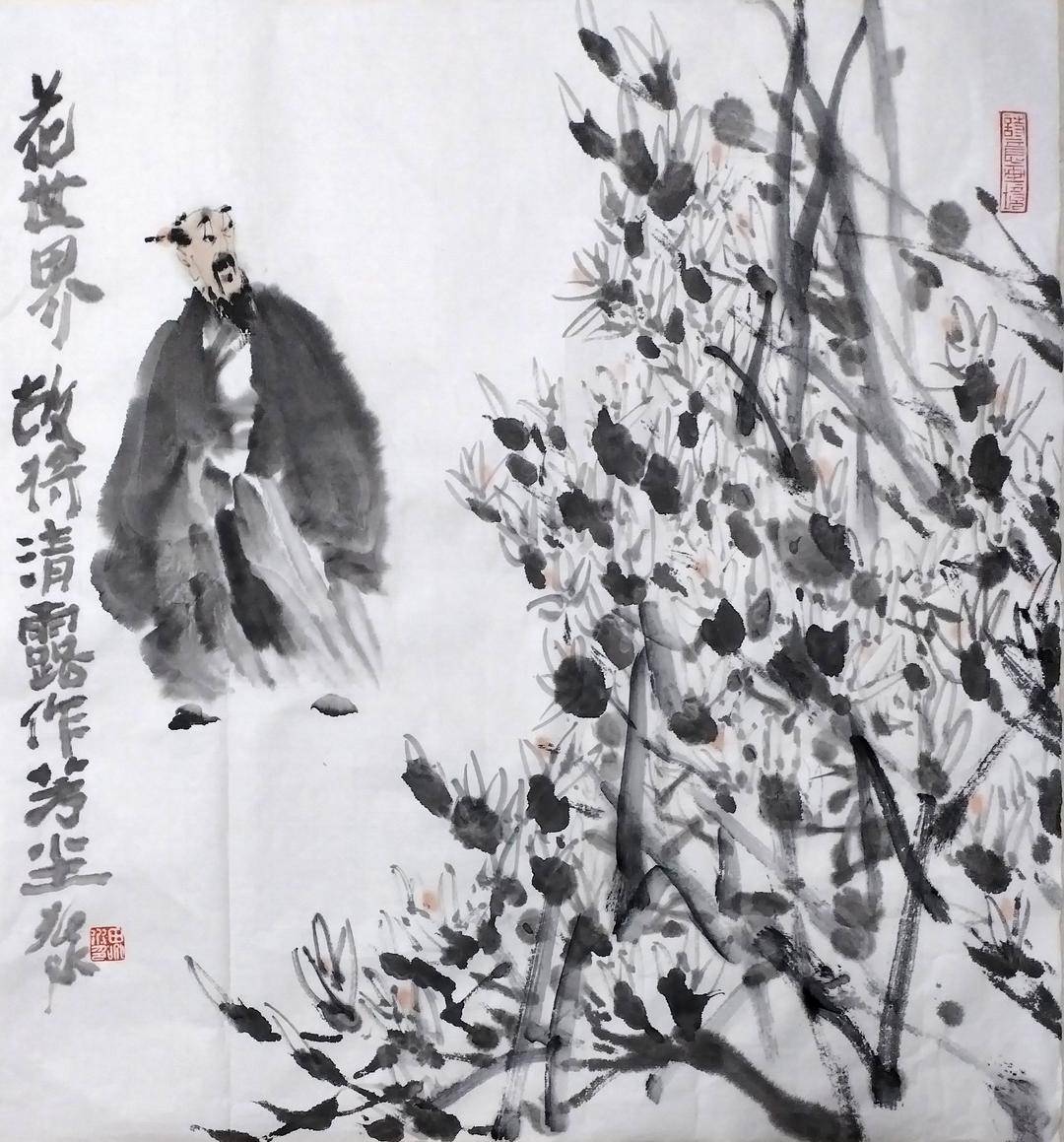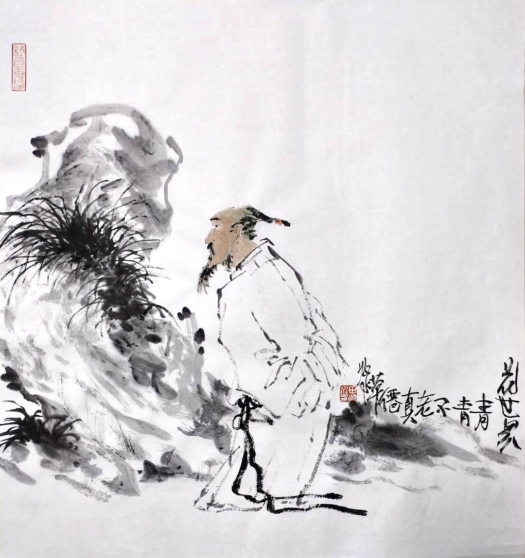 田兆水先生的人物画,追慕先贤,善怀古风,以古圣先哲为文化精神偶像,不断塑造个人艺术风貌,树立人文理想之心迹之作。让我们在重温古人先贤的哲思尚品,领略了他们的睿智才情的同时,也品味了先生的笔墨造诣和诗意文心。