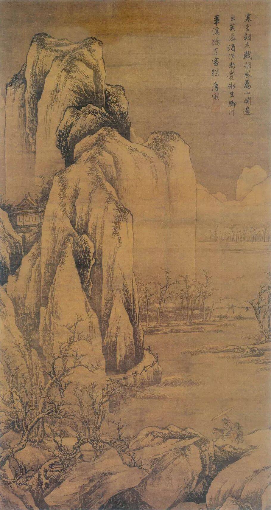 唐寅 雪山行旅图轴