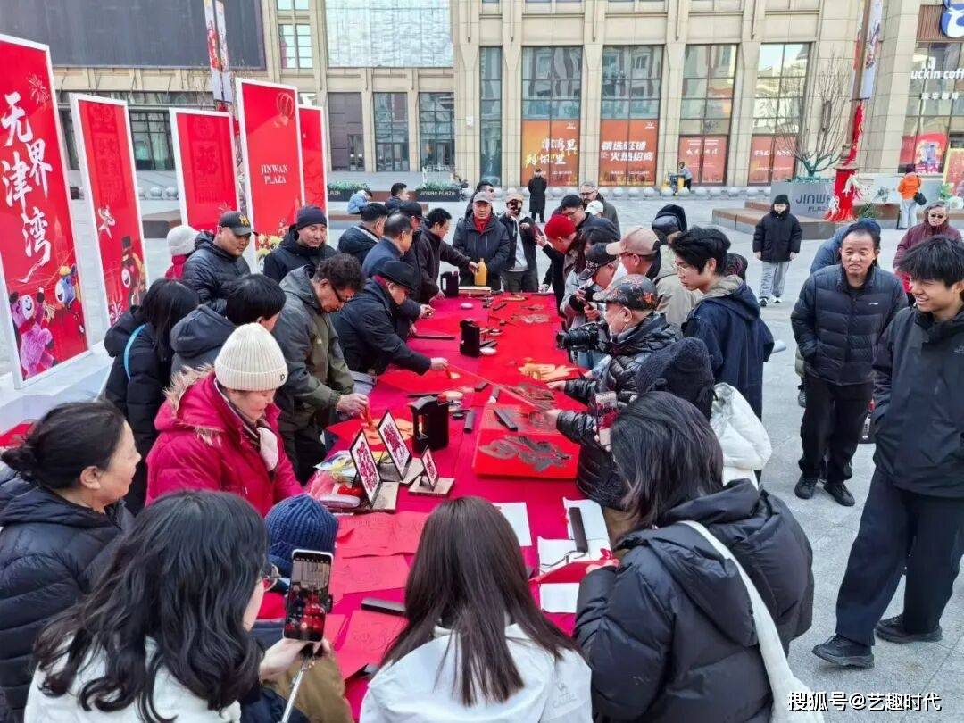 2月17日,正月初一,天津津湾广场墨香氤氲,一场以“无界津湾 马上有福”为主题的新春活动在此拉开帷幕。唐云来、林德谦、卢志健、韩福顺、杨天笑、周连起、姚钢、吕献峰等书法名家与非遗剪纸传承人齐聚海河之畔,与市民游客共同书写福字。一面由众人携手创作的“百福墙”在广场入口处惊艳亮相,成为新春特色打卡景观。
