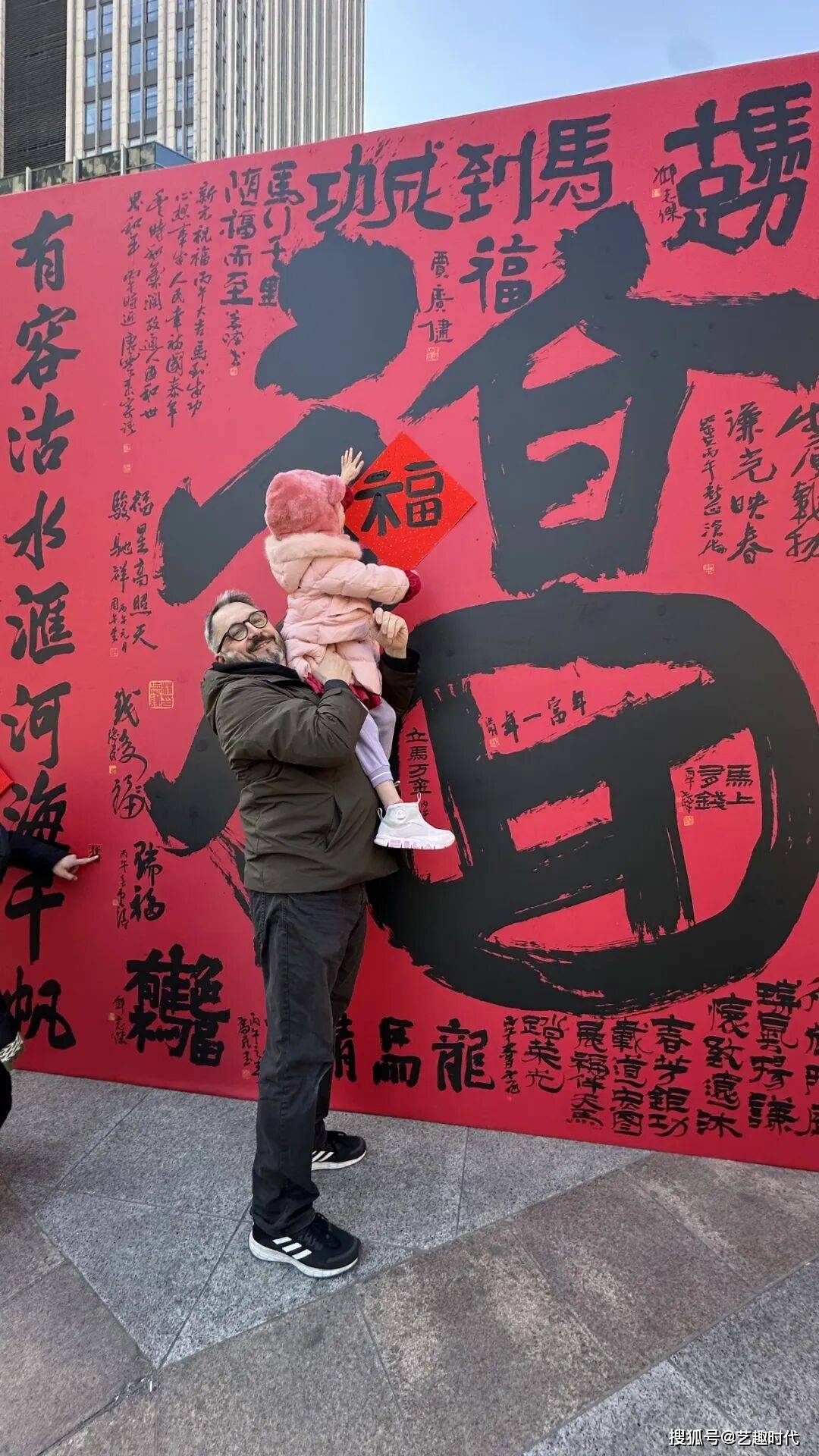 许多游客受现场氛围感染,也纷纷挽袖提笔蘸墨,在书法家的指导下写下新年的第一份期许。活动甚至吸引外国友人加入,法国游客米歇尔·沙东带着女儿一同参与,父女俩认真执笔,一笔一画临摹福字,沉浸式感受中国福文化的独特魅力。