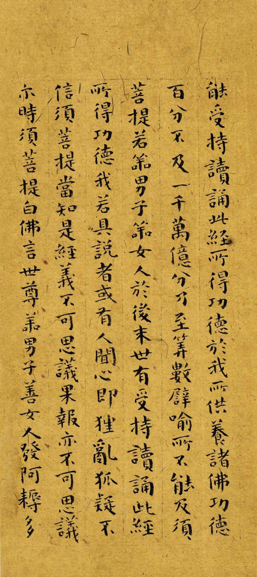 楷书在表现书家思想感情和艺术风格上显然比草书困难一些,所以需要书家有更深的文化修养和艺术功力。楷书和其他字体一样都是中国书法艺术不可缺少的部分。这就是欣赏傅山小楷《金刚经》给我们的启示。