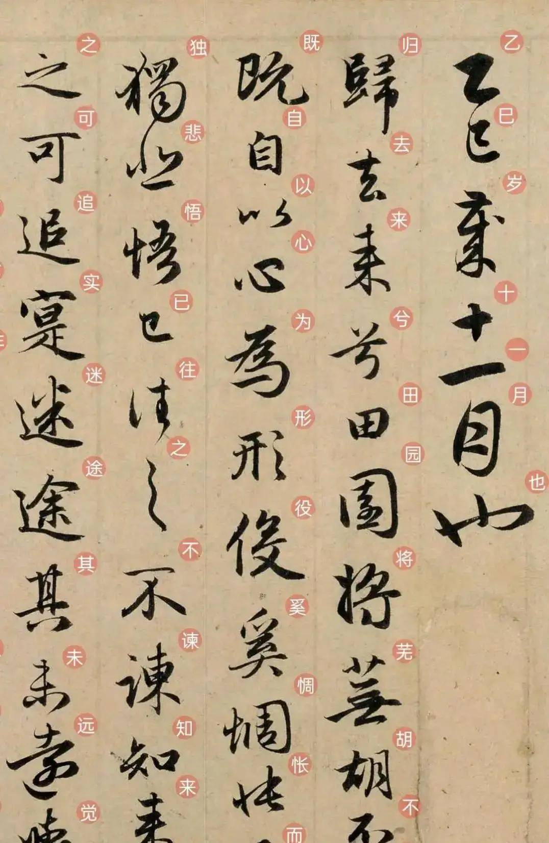 赵孟頫一生写过十八个版本的《归去来兮辞》,流传下来的就三卷:上海博物馆那卷是写给元仁宗的,字体工整得像穿西装的办公室白领;湖州本是晚年作品,笔锋松懈,像刚睡醒的老人;而辽博这一卷,是他四十七岁正值锋芒时写的,把“二王”的灵动和“赵体”的秀逸揉到了一起,笔墨像有生命似地在纸上游走。