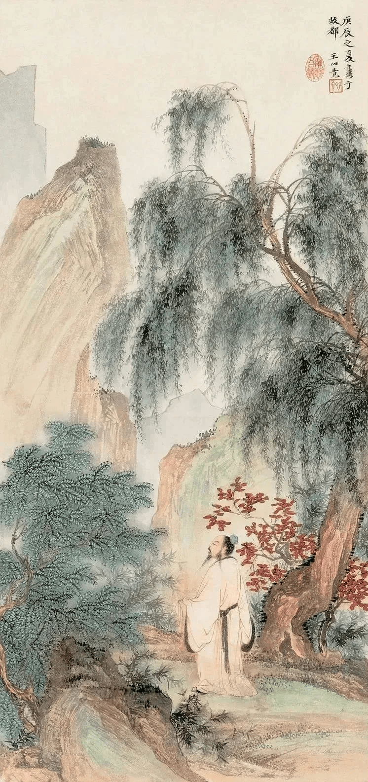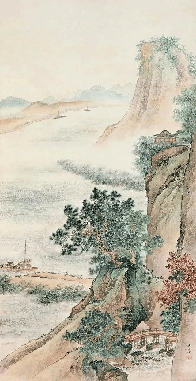 他画树更绝,叶子不是一片片画,而是一根根“绣”上去,细得像头发丝,可凑近看,每片叶子的脉络都清晰可见,仿佛能听见风吹过树叶的沙沙声。你说他“死板”?可他偏能用这细笔,画出瀑布的飞溅、云雾的流动,连远处的山峦都透着股子“仙气”。