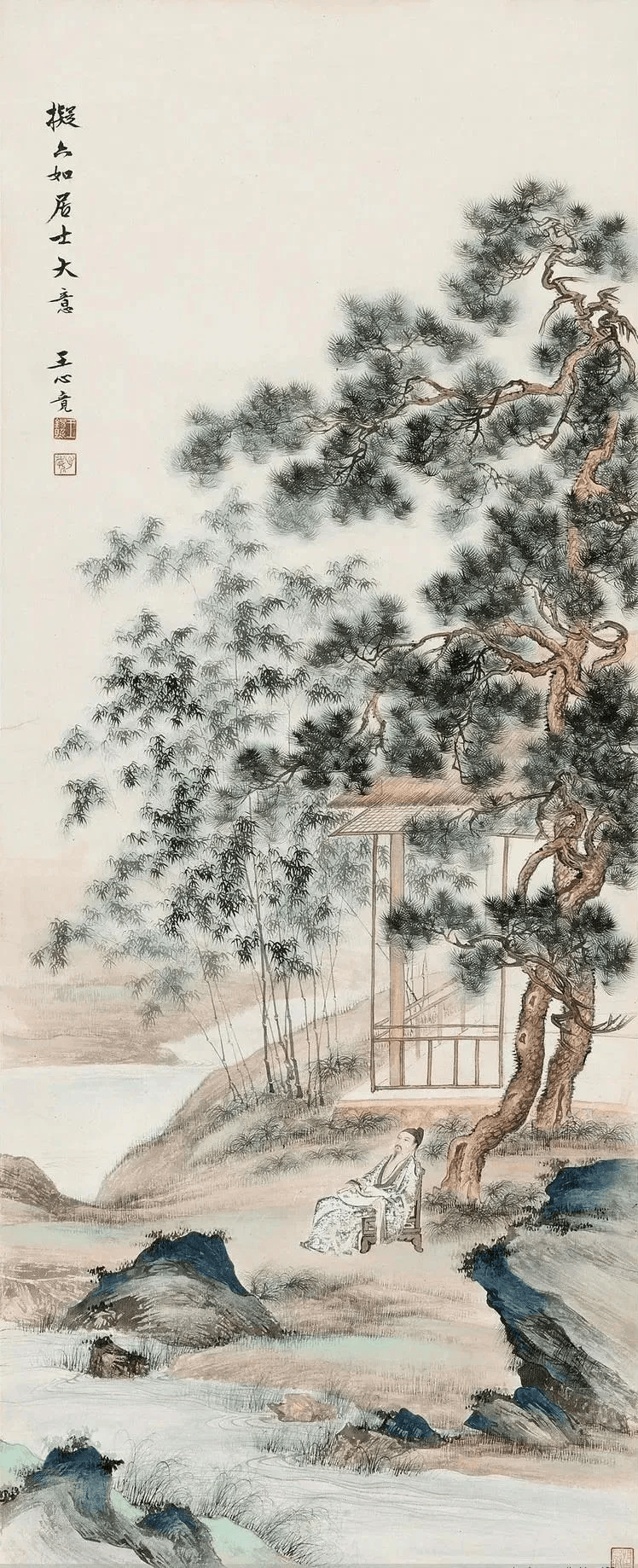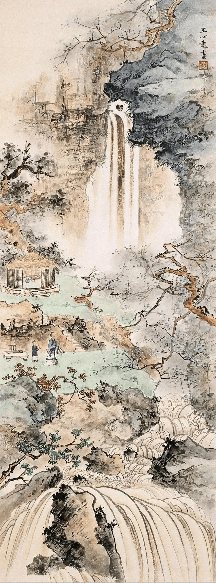 王心竟这老哥画山水,那叫一个“较真”——笔尖细得能穿针,偏要拿它绣出万里江山!他画山,不搞“大写意”的豪放,反而像老裁缝量体裁衣,一针一线勾出山石的褶皱,连石头缝里的青苔都数得清根数。