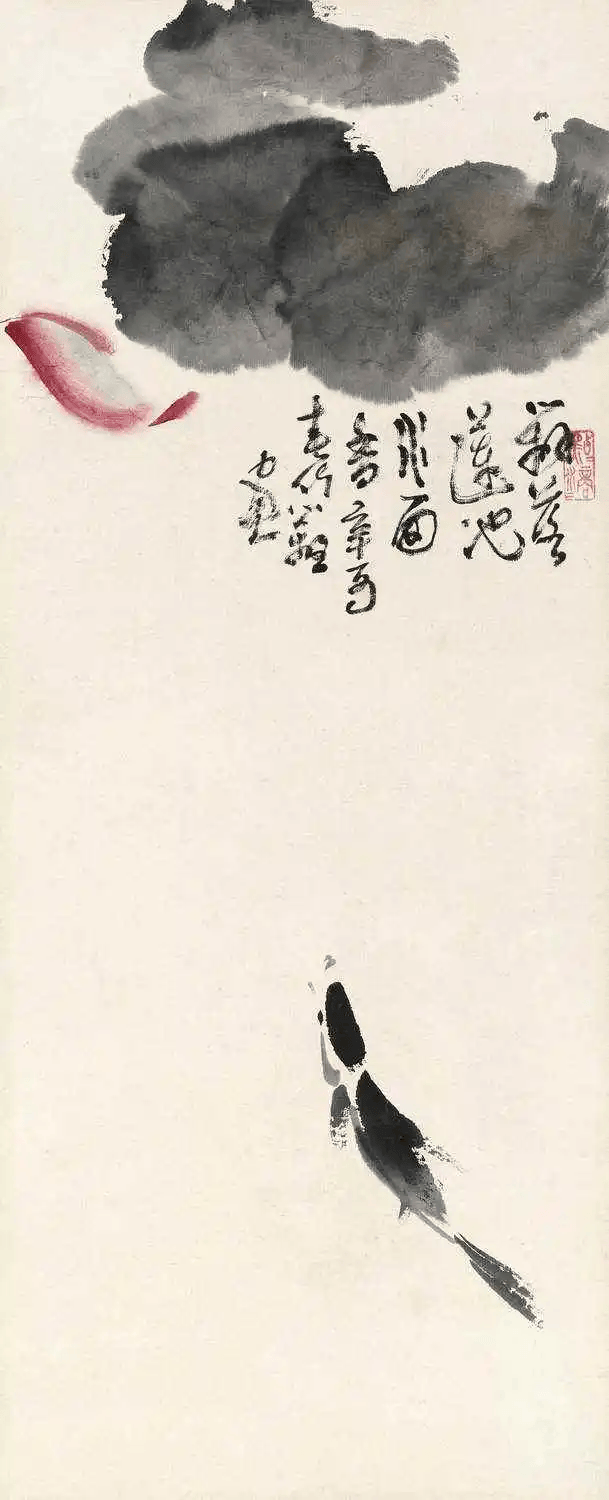 时人谓醉后作画别有神趣。盖作者在未饮时,往往有这样那样的杂念束缚了思想,有如作茧自缚不能破出。因此借酒起兴无所顾及,纵情挥洒常得佳作。若素日修养,从无杂念,亦得佳品。解衣盘礴又何尝借酒也?