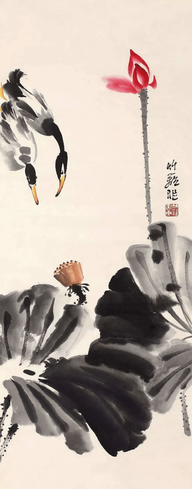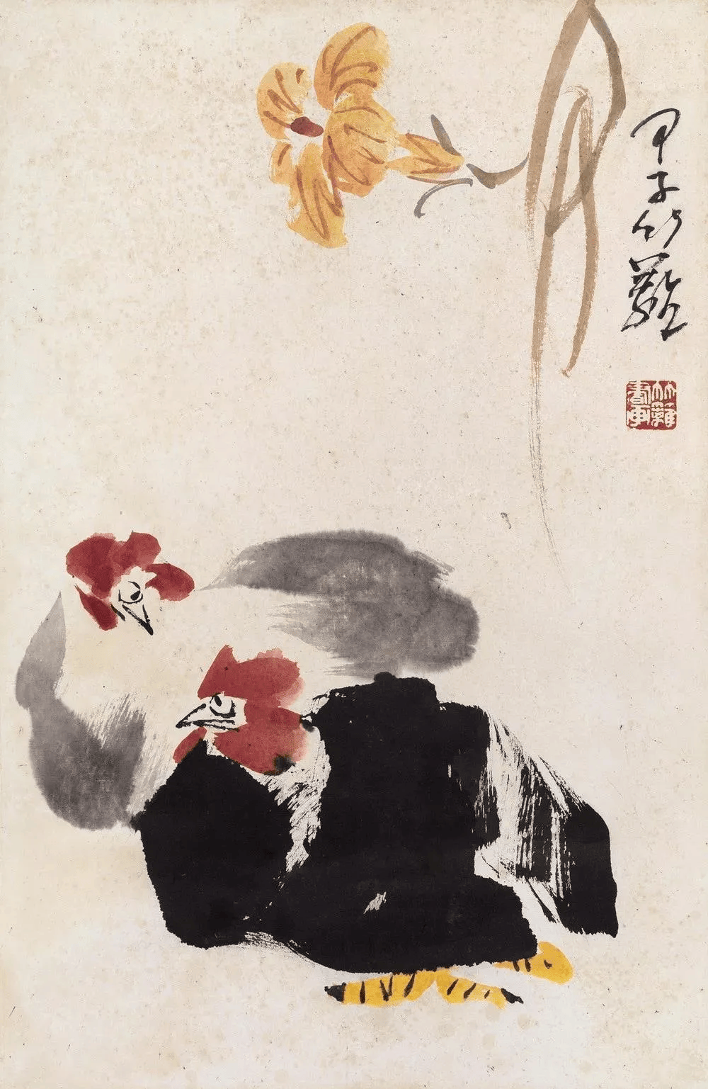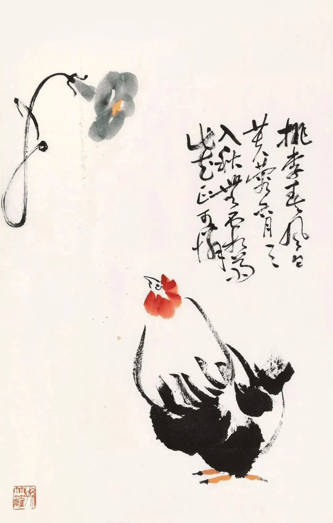 他的写意花鸟,别具特色