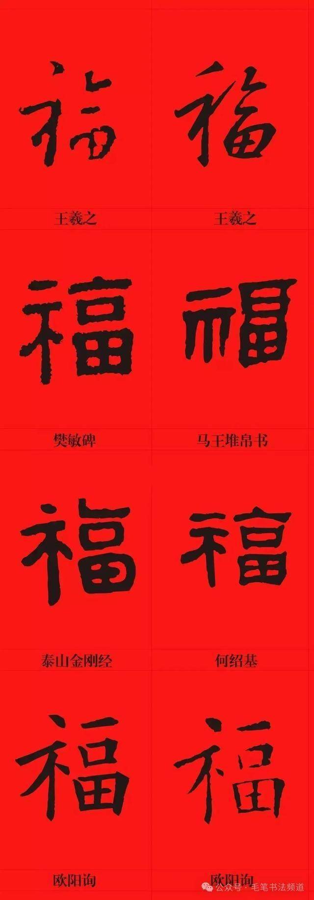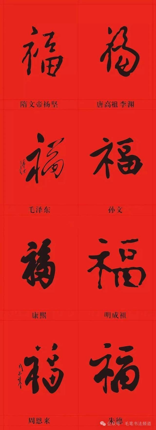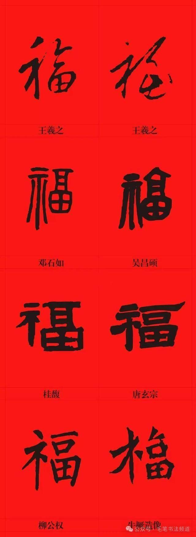 王羲之、邓石如、吴昌硕、桂馥、唐玄宗、柳公权书法“福”字何绍基、欧阳询、赵佶、褚遂良、颜真卿、赵孟頫书法“福”字孙文、毛泽东、周恩来、朱德、刘少奇、邓小平书法“福”字蔡京、董其昌、黄庭坚、宋克、文徵明、王宠、智永、怀素书法“福”字