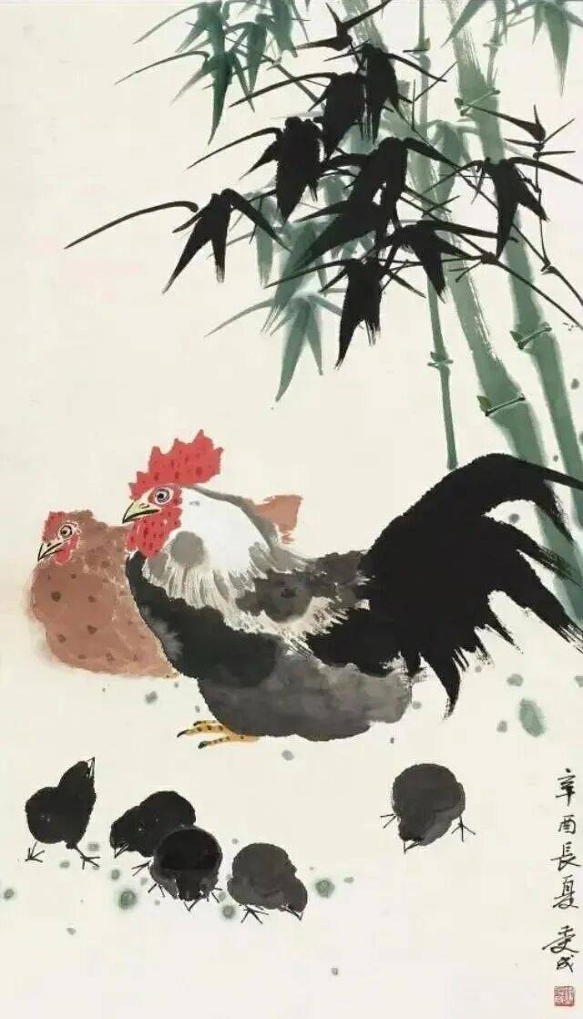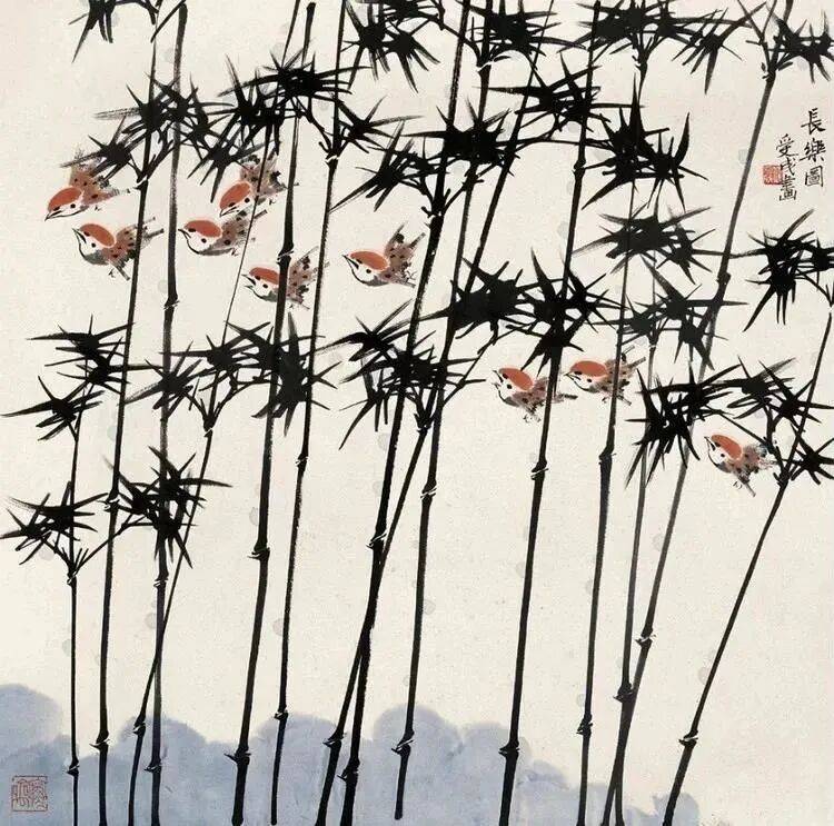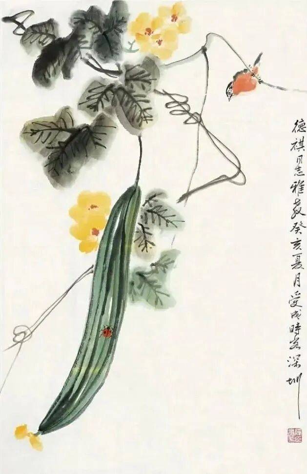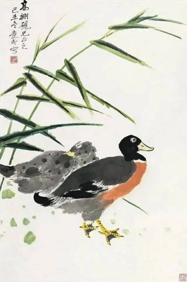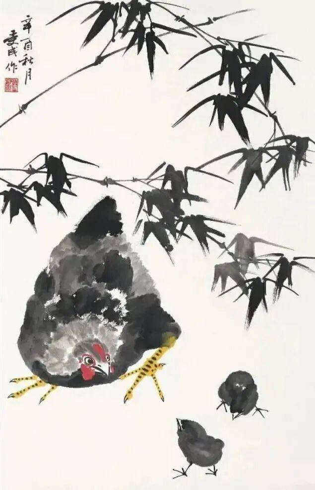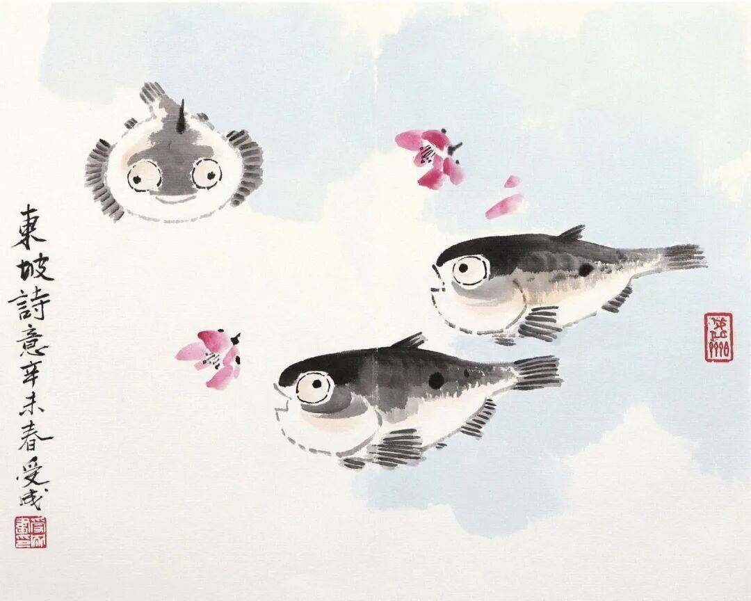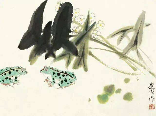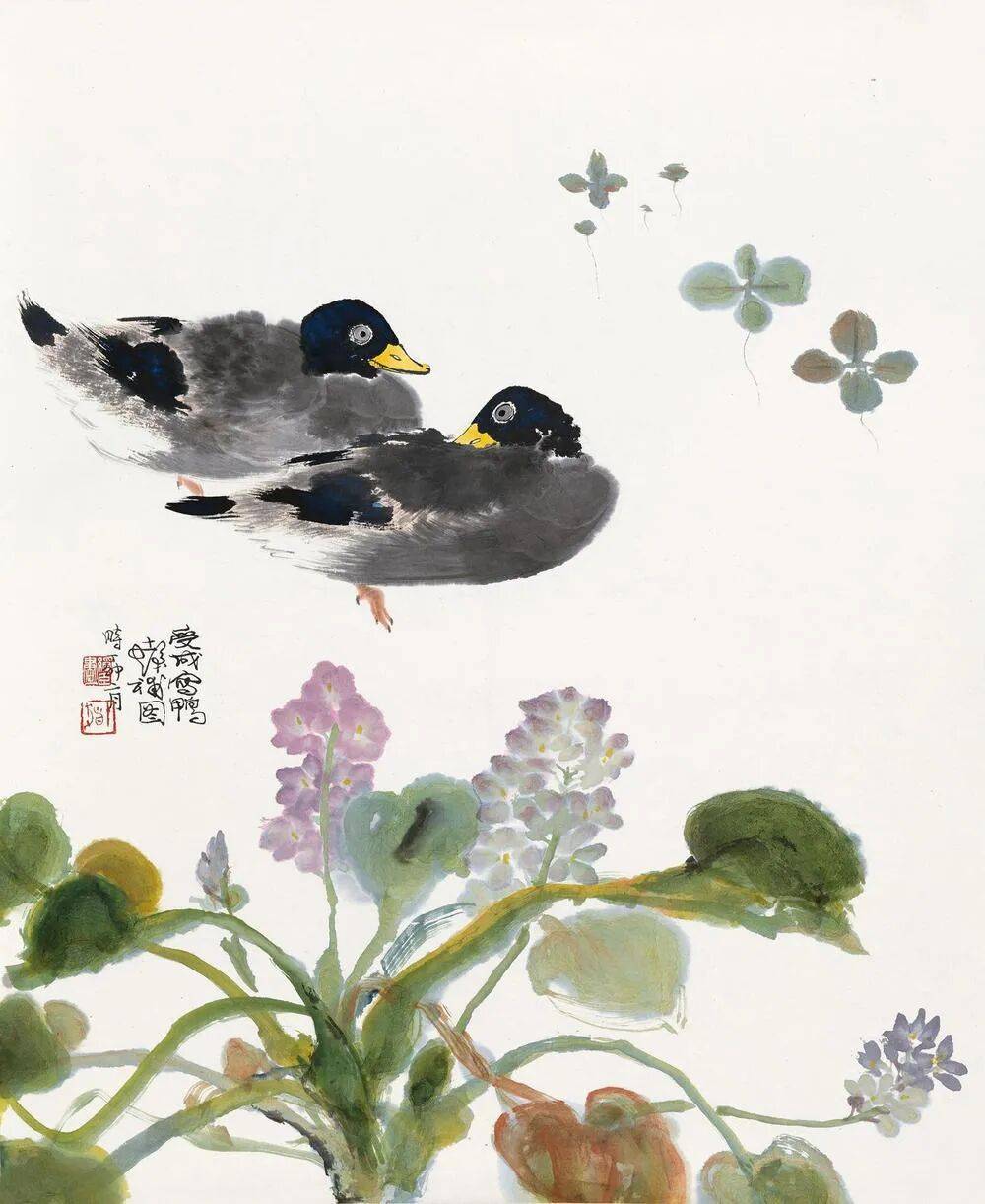 无论画什么题材,他的画面着色都不多,但却清雅而意趣无穷,既饶有图案的美感,又不失国画的韵味,虽是寥寥几笔的写意,却内蕴着无穷的生命力。