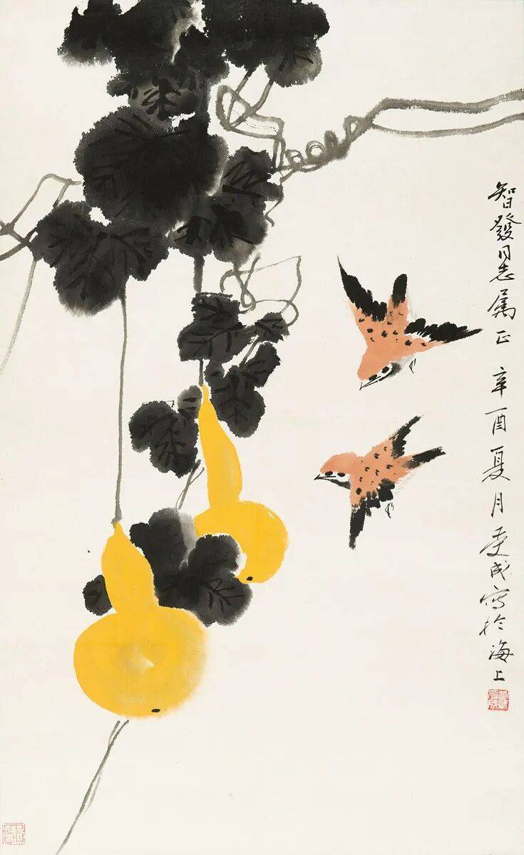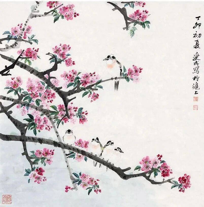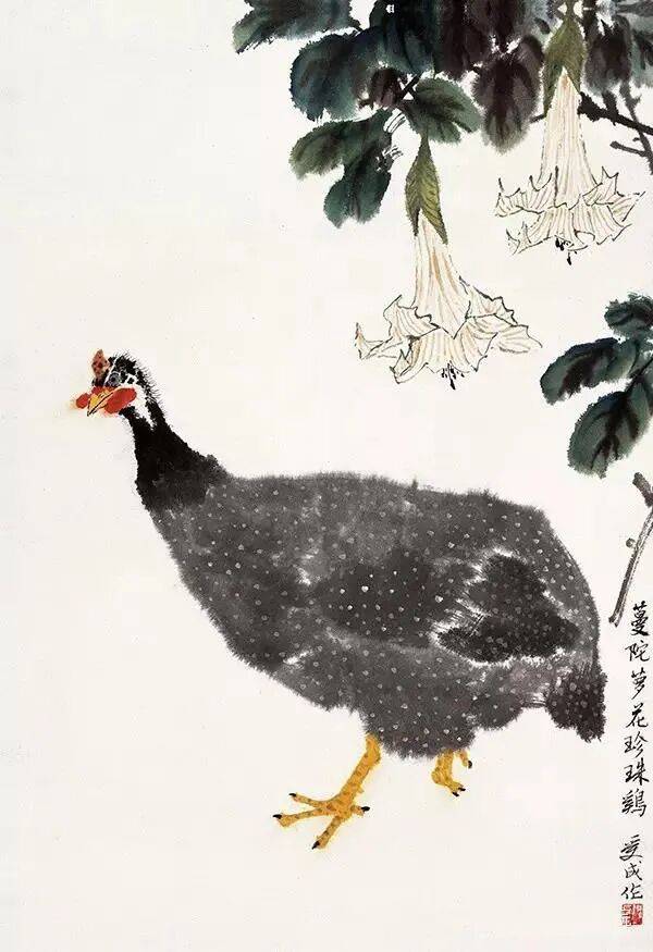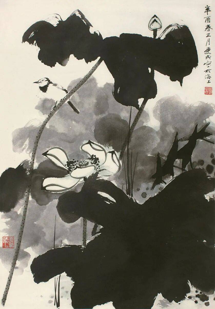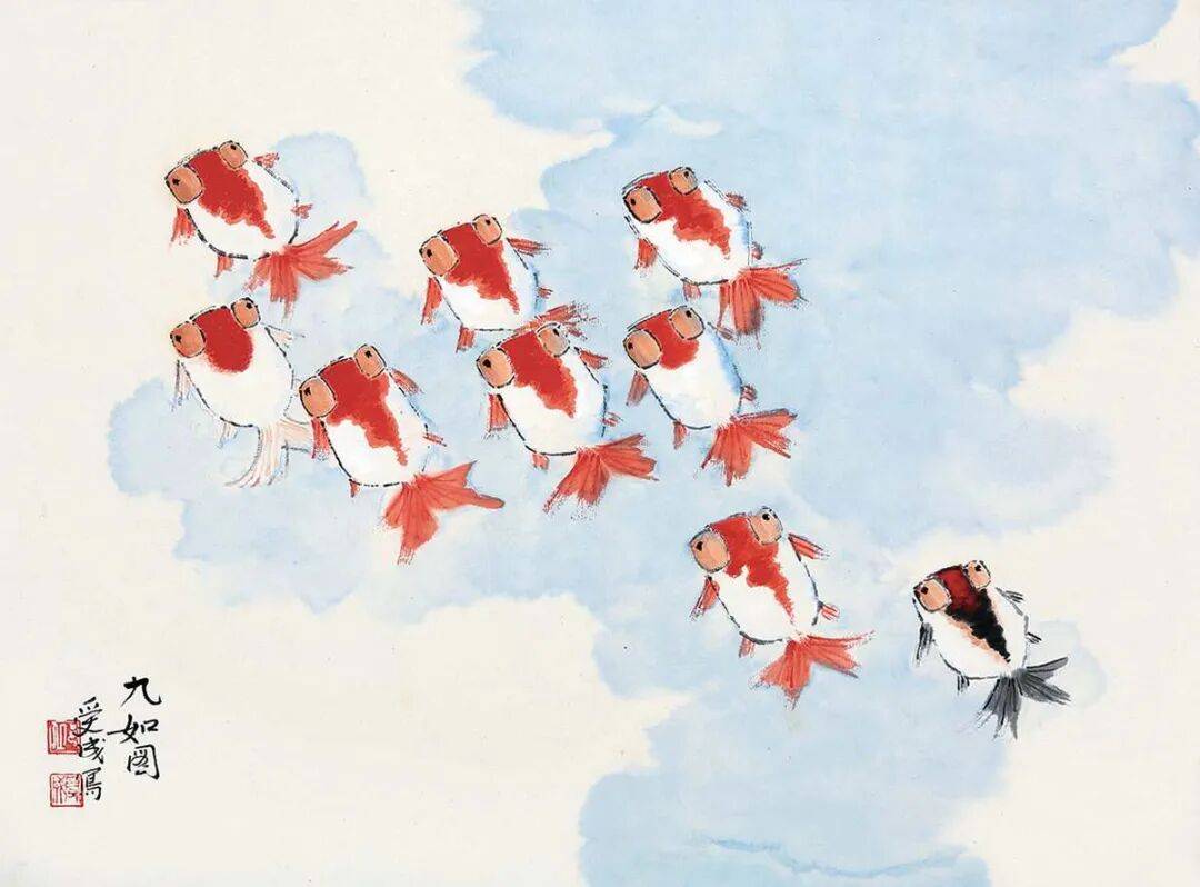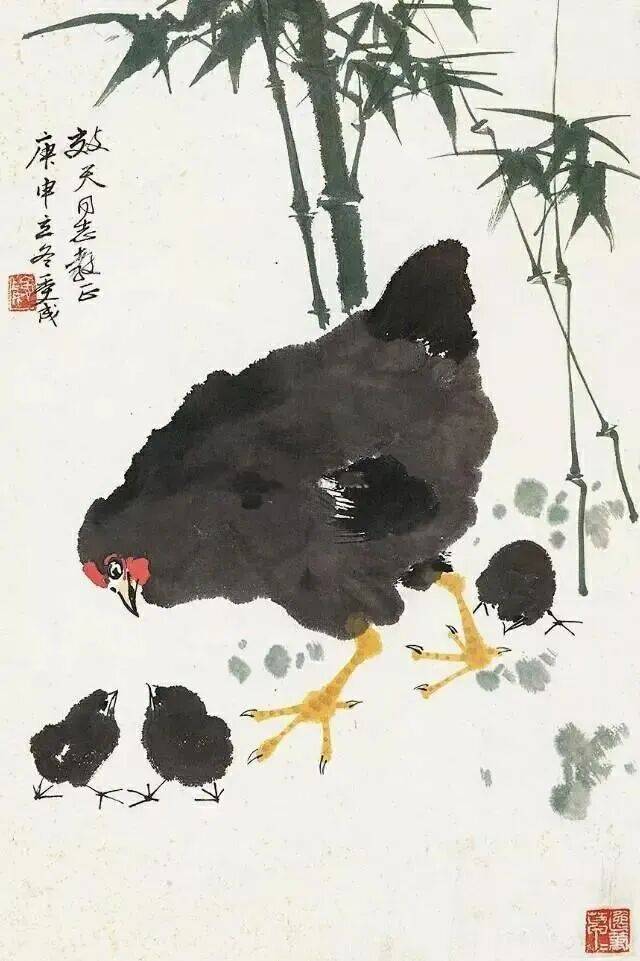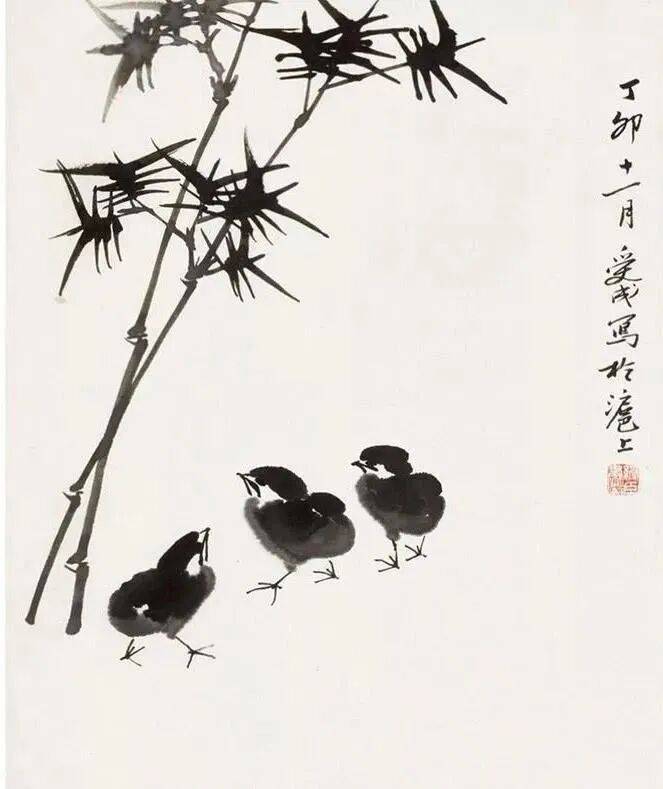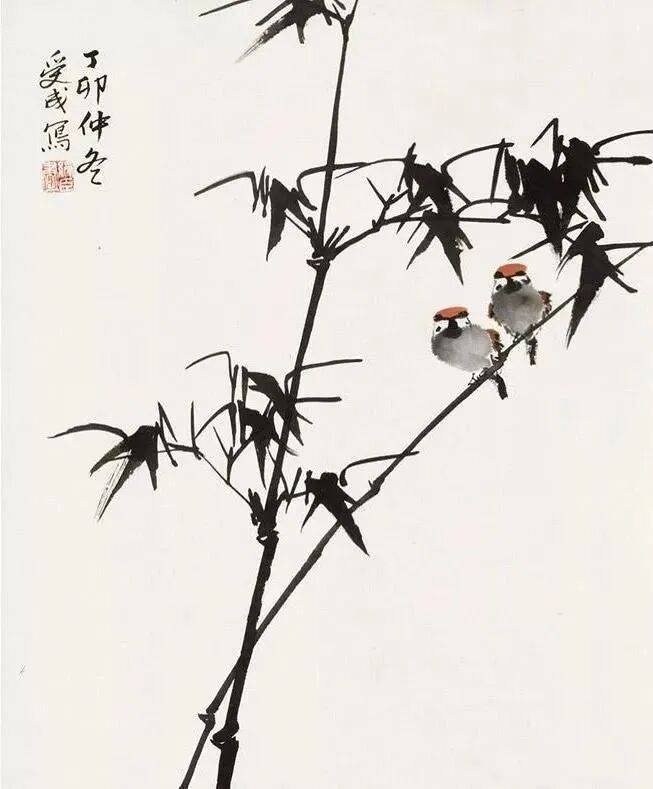 无论画什么题材,他的画面着色都不多,但却清雅而意趣无穷,既饶有图案的美感,又不失国画的韵味,虽是寥寥几笔的写意,却内蕴着无穷的生命力。