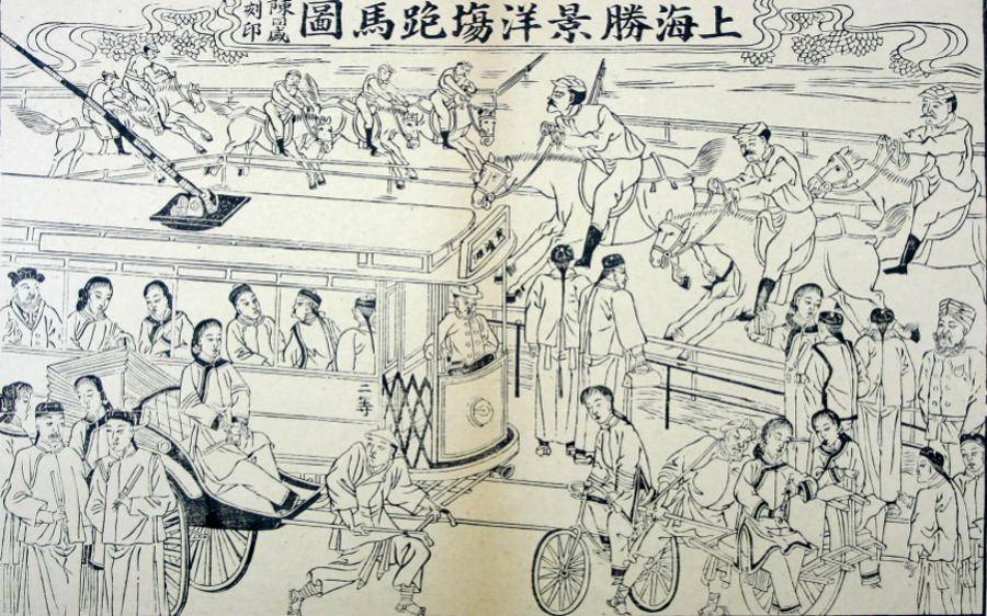 《上海胜景洋场跑马图》 陈同盛苏州桃花坞,苏州桃花坞木刻年画博物馆藏