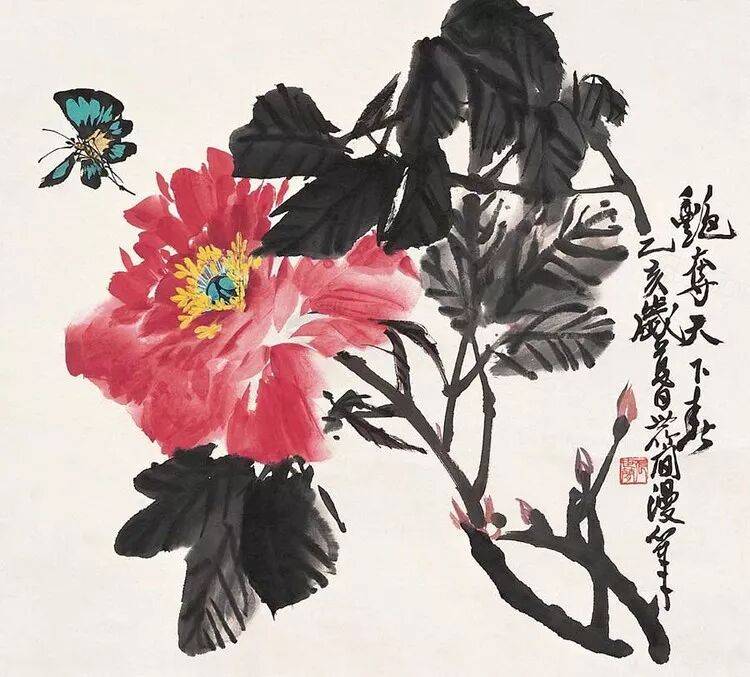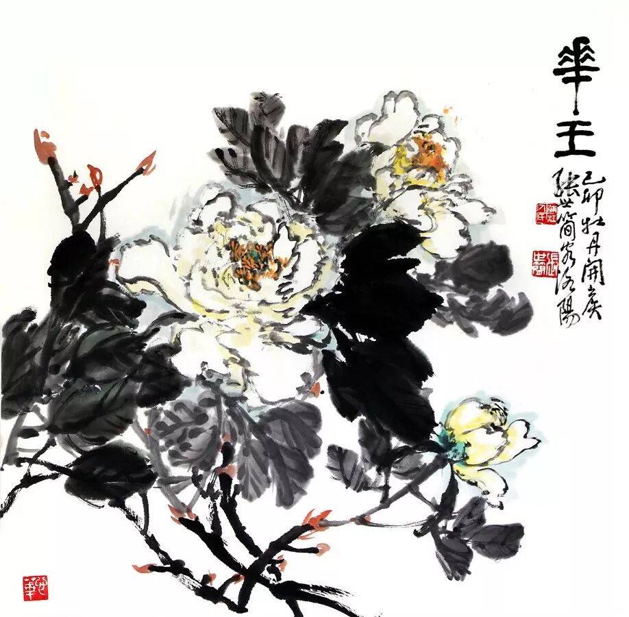 张世简坚持从自然中汲取灵感,强调“化景物为情思”,将个人情感融入画面。他通过对牡丹长期观察与写生,提炼出最具表现力的形态特征,并结合传统笔墨程式进行再创造,使作品既有生活气息,又具文人画的雅逸之趣。