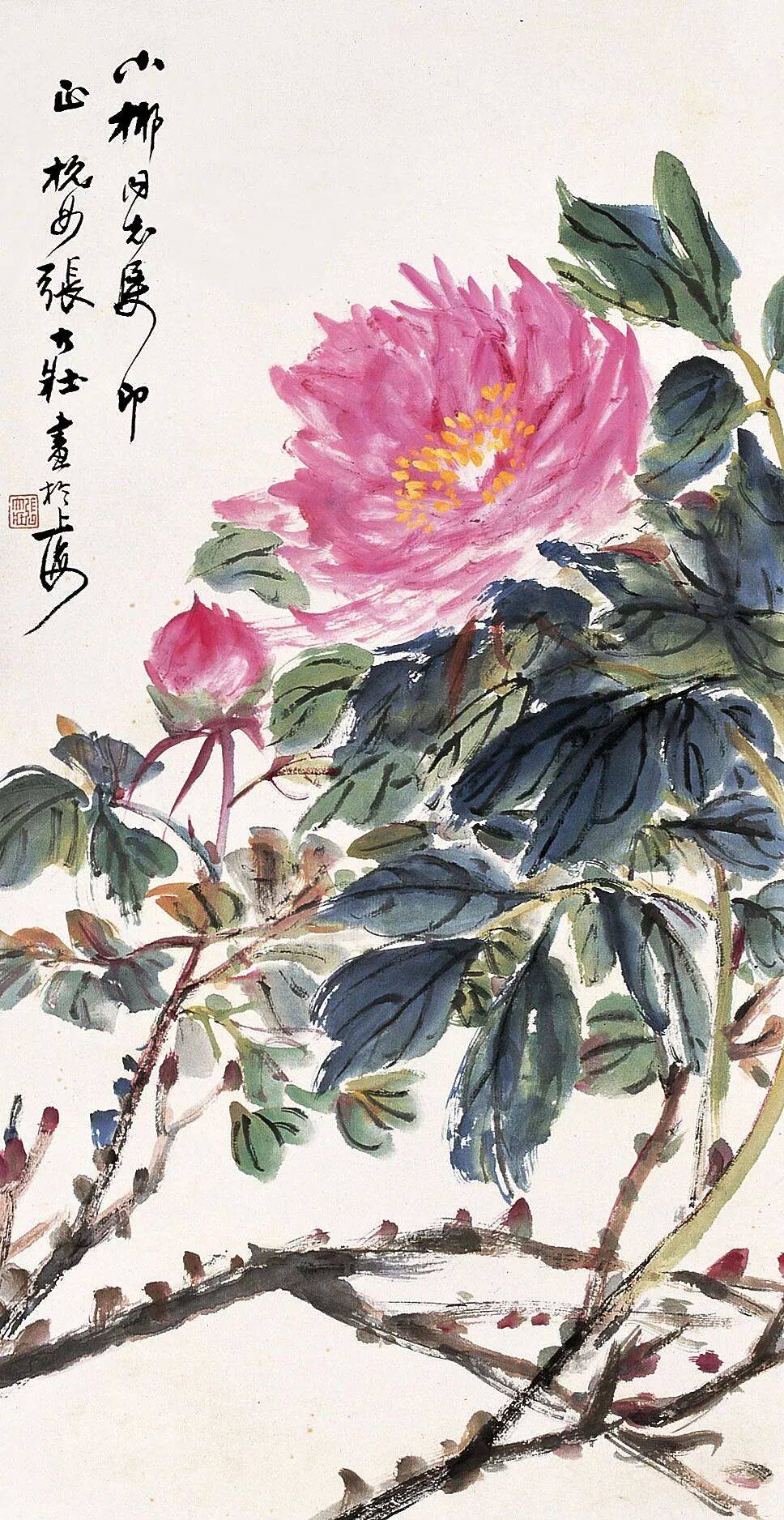 张大壮承恽南田“没骨渲染”之精髓,将传统技法推向灵动新境,笔下牡丹清润秀雅、艳而不俗,在近现代花鸟画坛独树一帜。