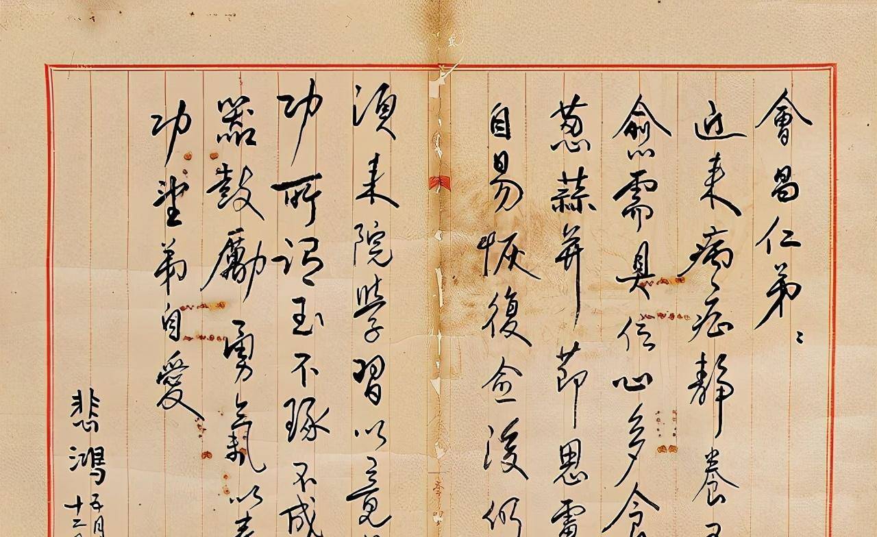 徐悲鸿的手迹 徐悲鸿生于江苏的一个普通家庭,他的父亲徐达章是一位私塾先生,家境贫寒,但文化底蕴深厚。在这样的家庭背景下,徐悲鸿自幼便接触到了绘画艺术。9岁时,他便开始拿起画笔,10岁时,已经能为乡邻书写春联。 然而,13岁那年,由于家乡遭遇水灾,徐悲鸿随父亲辗转他乡,此时他已开始通过卖画为生。经历了几年的漂泊与困顿,徐悲鸿见识了更广阔的世界,也感受到家庭的经济困难,无法支付学费。 在这样的困境中,徐悲鸿深感人生艰难,遂改名徐悲鸿,寓意鸿雁哀鸣,并带着一颗求学的心,独自一人前往上海寻找机会。