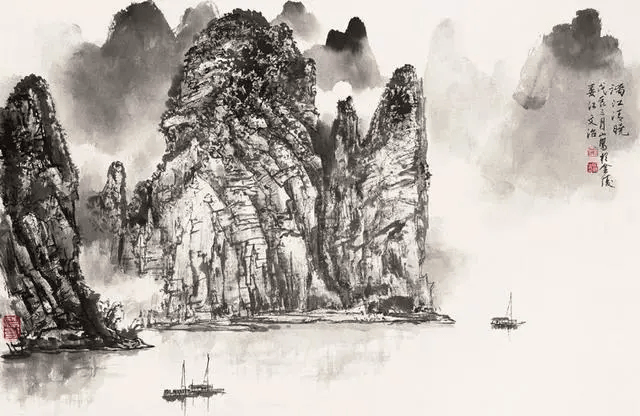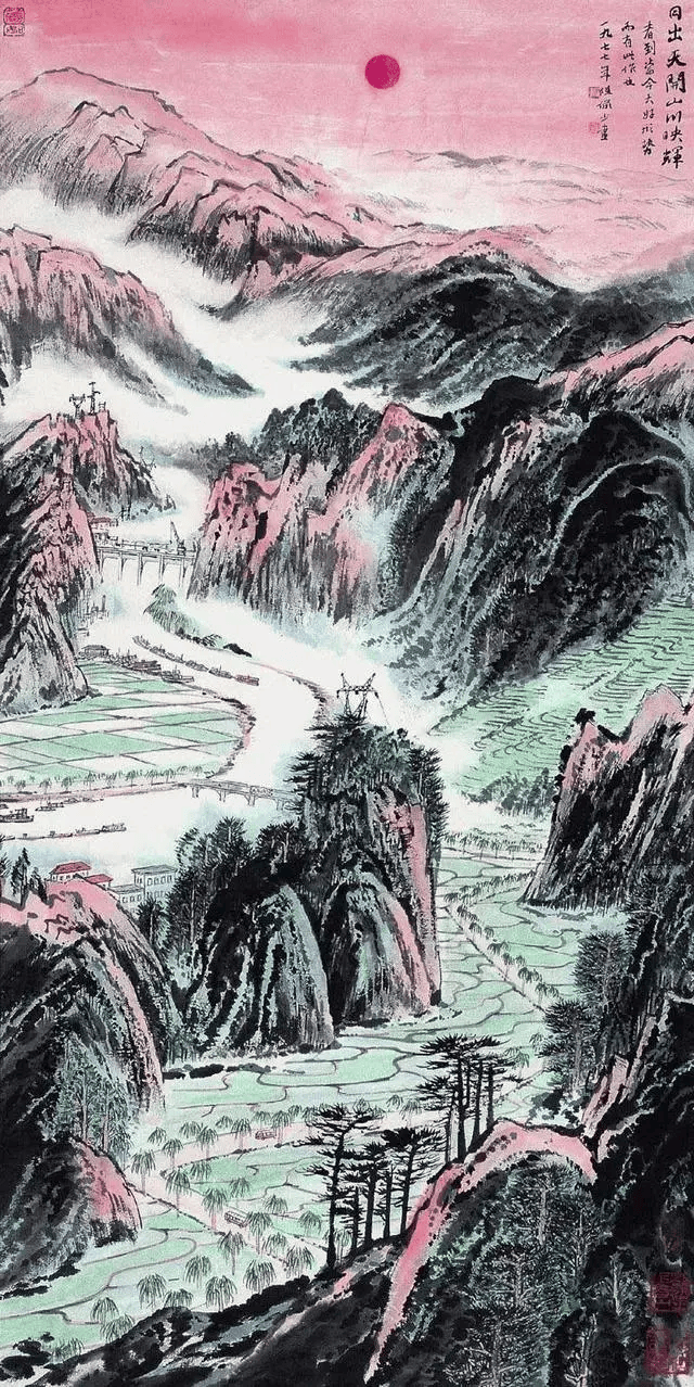 点、线、块是山水画的基本功力表现的形式。它是依附物体形象而存在,离开了物象,就失掉它的作用。我们不能孤立起来讲点、线、块,要求做到运用适当的点、线、块,恰如其分地把物象表达出来。三者之中,尤以线最为重要。一一《山水画自序》