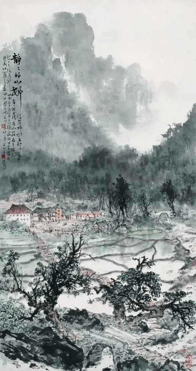 画山水不能一遍即了,必须一遍二遍地加,才能厚,才能使人有完工的感觉。何处应加,何处不应加,心中要有个数。大致是处重处要加,甚至有的地方要加得结实,一遍二遍地加,不让它透一点风。有些地方少加,或者干脆不加,即所谓“放得下”。一一《山水画刍议》