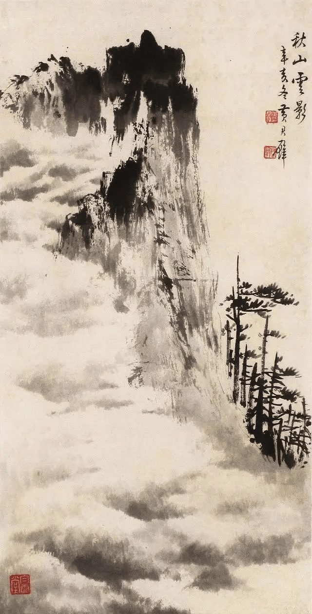 山水画中点子极为重要,它既是树叶,又是苔点。点时笔毛要平均着纸,聚而不散,在一点之中,笔贵重实,具有笔意,是极见功力的。切不可像蜻蜓点水那样,轻轻着纸,只有墨痕,不见笔迹,狼藉满纸,无有生气,更谈不上沉着痛快。一一《山水画自序》