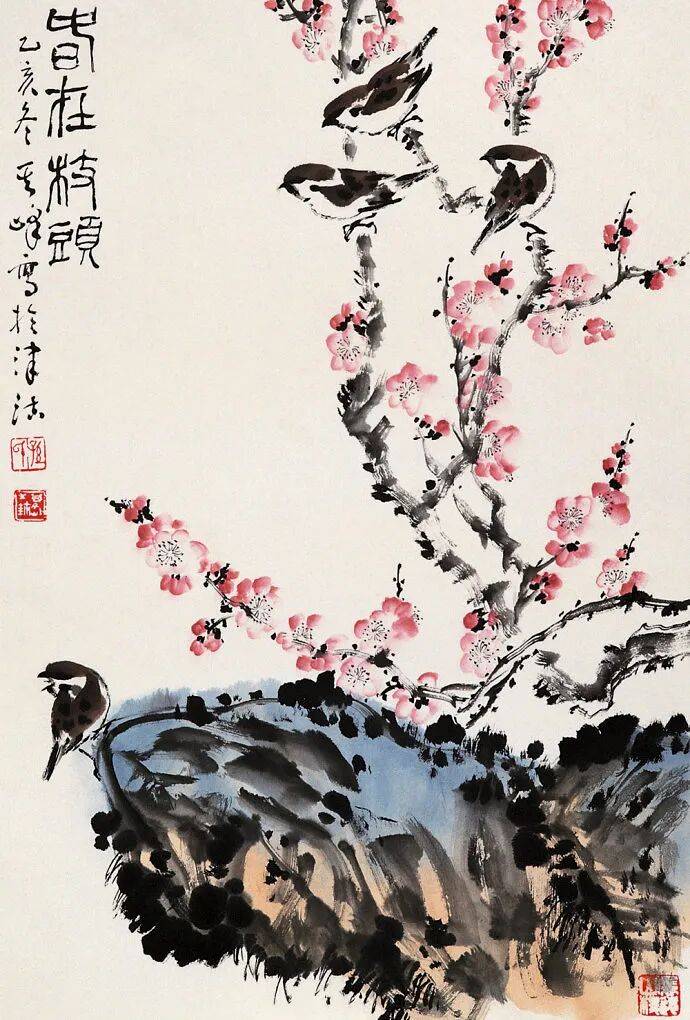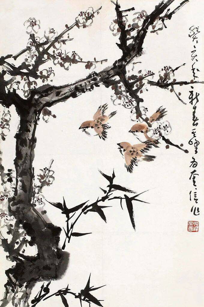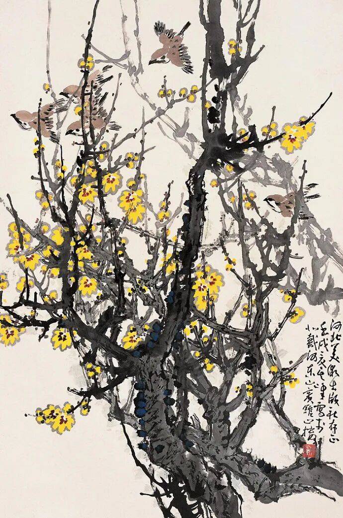 孙其峰长期任教于天津美术学院,著有《花鸟画谱》《孙其峰教学手稿》等,系统总结了画梅技法,提倡“大胆落笔,细心收拾”的创作理念。他主张初学者应从梅花入手,掌握枝干规律后可举一反三,应用于桃花、杏花、腊梅等同类花卉的绘制。