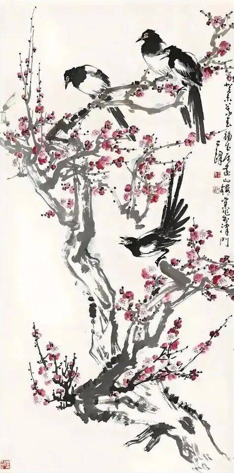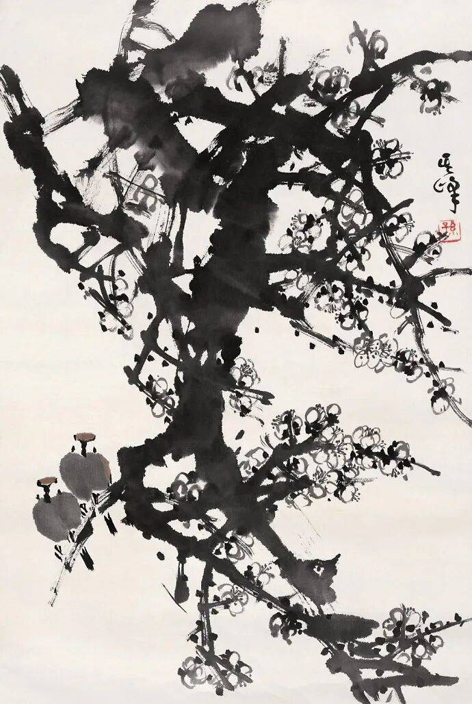 孙其峰是中国当代著名的花鸟画家、美术教育家,其笔下的梅花以笔法老辣、墨色丰富、意境深远著称,不仅展现了梅花的自然形态,更传递出坚韧高洁的精神气质。