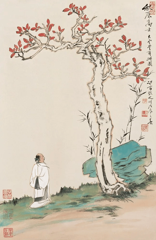 李行百(1926.5—)字信伯。四川成都人。擅长中国画、画论。1946年毕业于金陵大学中文系。后拜张大千为师学画 。四十年代初参加“蜀艺社”,从芮敬予学画史、画论,从谢无量学文物鉴赏。