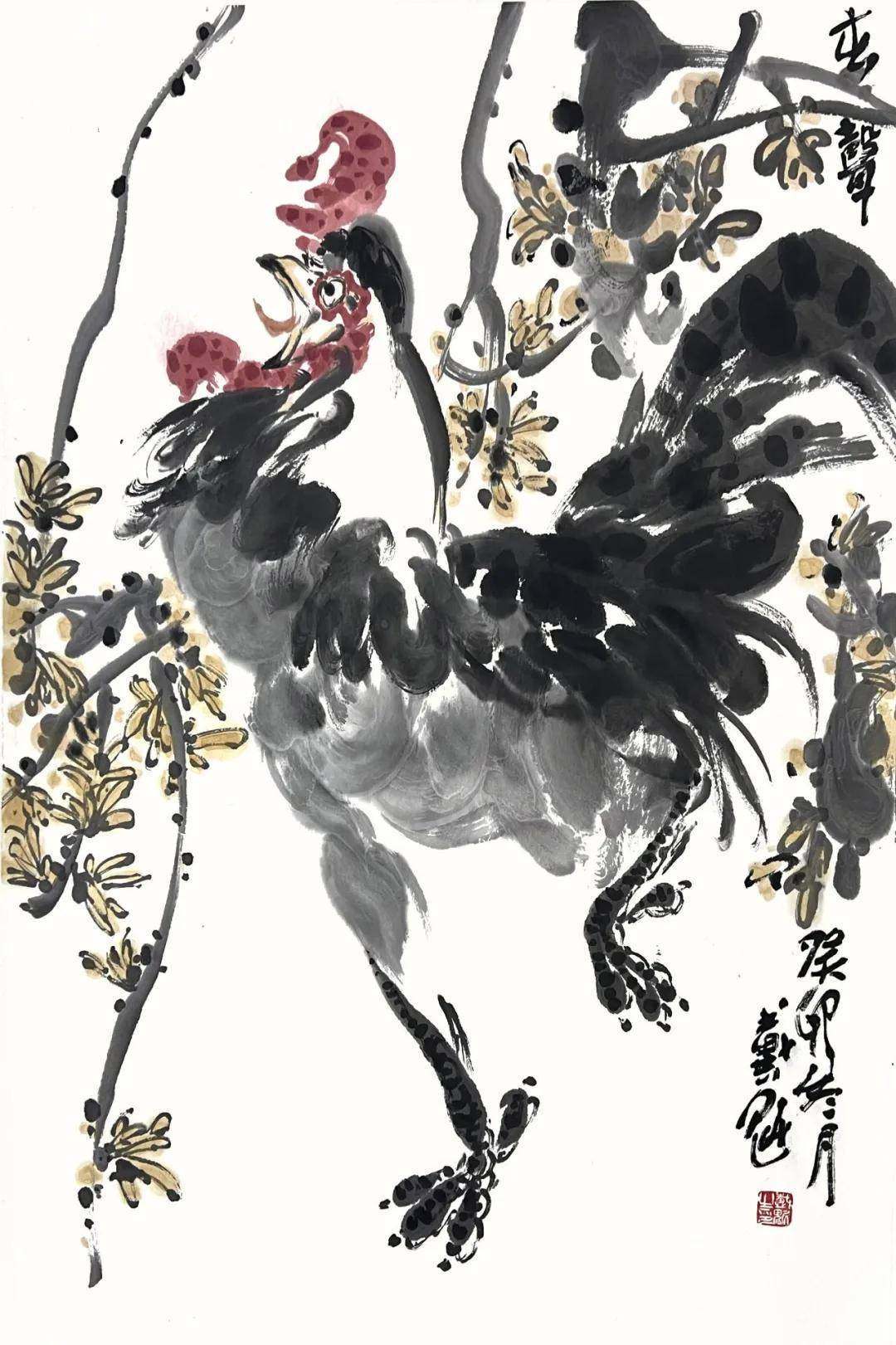 作为学者型画家,戴魁先生的艺术底蕴,更源于其数十年的学术积淀与教学实践。他深耕河北师范大学美术教育领域,桃李满天下,同时兼修人物画与花鸟画,二者相得益彰,让其花鸟作品兼具人物画的生动气韵与花鸟画的写意空灵。他主张写意花鸟画应承载中国文化的精神内涵,笔墨的书写性是其灵魂,唯有将心境与笔墨相融,才能让作品拥有真正的“精气神”。这种学术思考贯穿其创作始终,也让他的作品超越了单纯的视觉审美,成为兼具艺术价值与文化价值的精神载体,其作品多次入选全国美展,赴韩、法、意等多国展出交流,艺术成就得到业界与国际的双重认可。
