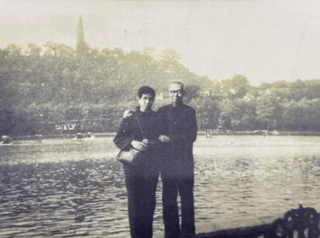 与恩师王雪涛于西湖畔合影(左席玉怀 右王雪涛)