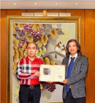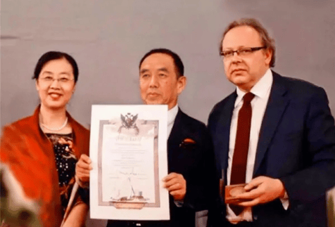 列宾美术学院院长奥赫洛普科夫为席玉怀颁发列宾美院名誉教授聘书