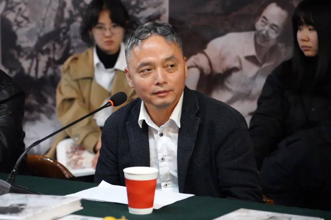 丛书项目主持人、副总主编,中国国家画院花鸟画所艺术家刘海勇教授通过视频致辞,介绍了丛书项目概况,《管锥·使命》丛书自2018年启动以来,在学院及宣传部等多方支持下稳步推进。丛书以尊师重教、传承文脉为初心,系统整理老先生们的从艺、治学与创作经验,兼具温度与价值。项目凝聚众多师生与部门合力,离不开学院领导、宣传部、编辑出版团队、硕博研究生及出版社的耐心打磨和持续付出。他向参与丛书编撰的各位前辈艺术家及家属致以诚挚谢意,正是他们无私分享宝贵经验,才让学术文脉得以传承延续。