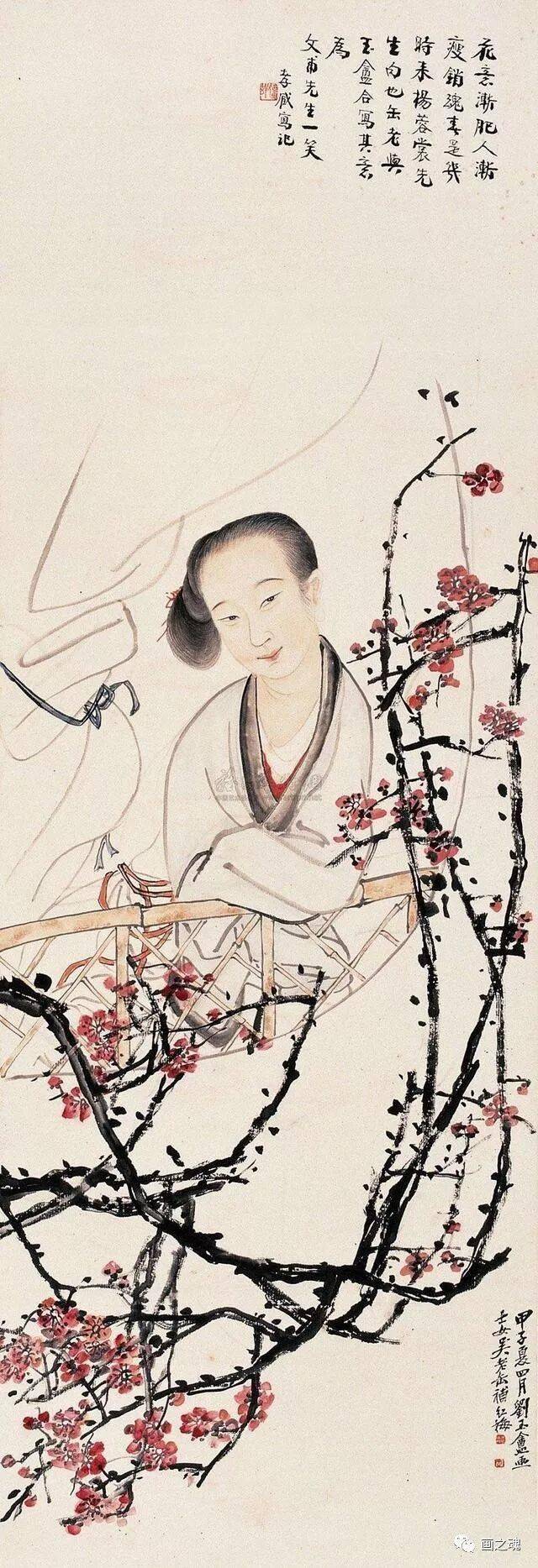甲子(1924) 红梅仕女