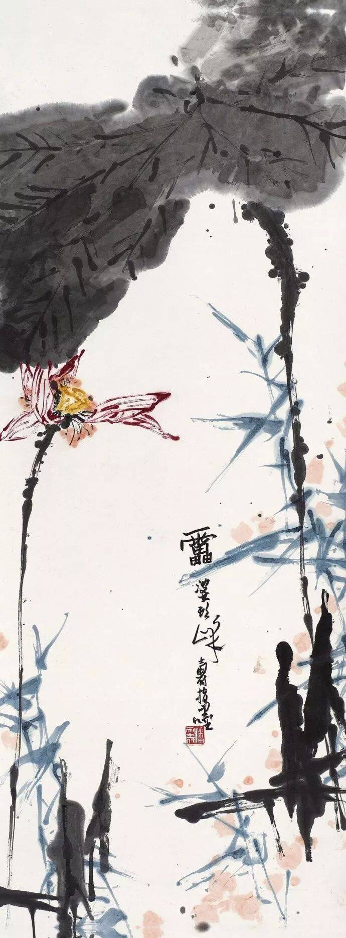 潘天寿 指墨《红荷》