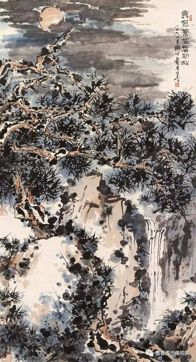 画面出现平薄,其原因之一是黑色不浑化。能不能浑化,关键在于用笔蘸墨、汲水、调色以及笔头着纸的方法是否准确。对于大块墨色处,尤当着意研究。