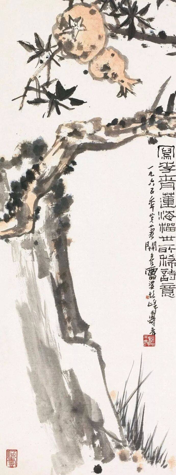 潘天寿 写李青莲海榴世所稀诗意