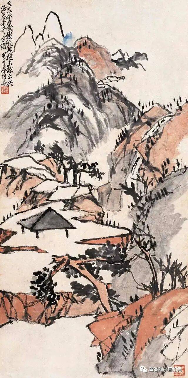 苦瓜和尚极善用点。有风雪晴雨四时得宜点,有正反阴阳衬贴点,有夹水夹墨一气混杂点,有含苞、藻丝、缨络、连牵点,有空空阔阔干燥无味点,有有墨无墨飞白如烟点,有如胶似漆邋遢透明点,以及没天没地当头阳面点,有千岩万壑明净一点,详矣。然尚有点上积点法,未曾道及,恐系遗漏耳。点上积点之法,可约为三种:一、醒目点,二、糊涂点,三.错杂纷乱点。此三种点法,工于积墨者,自能知之。