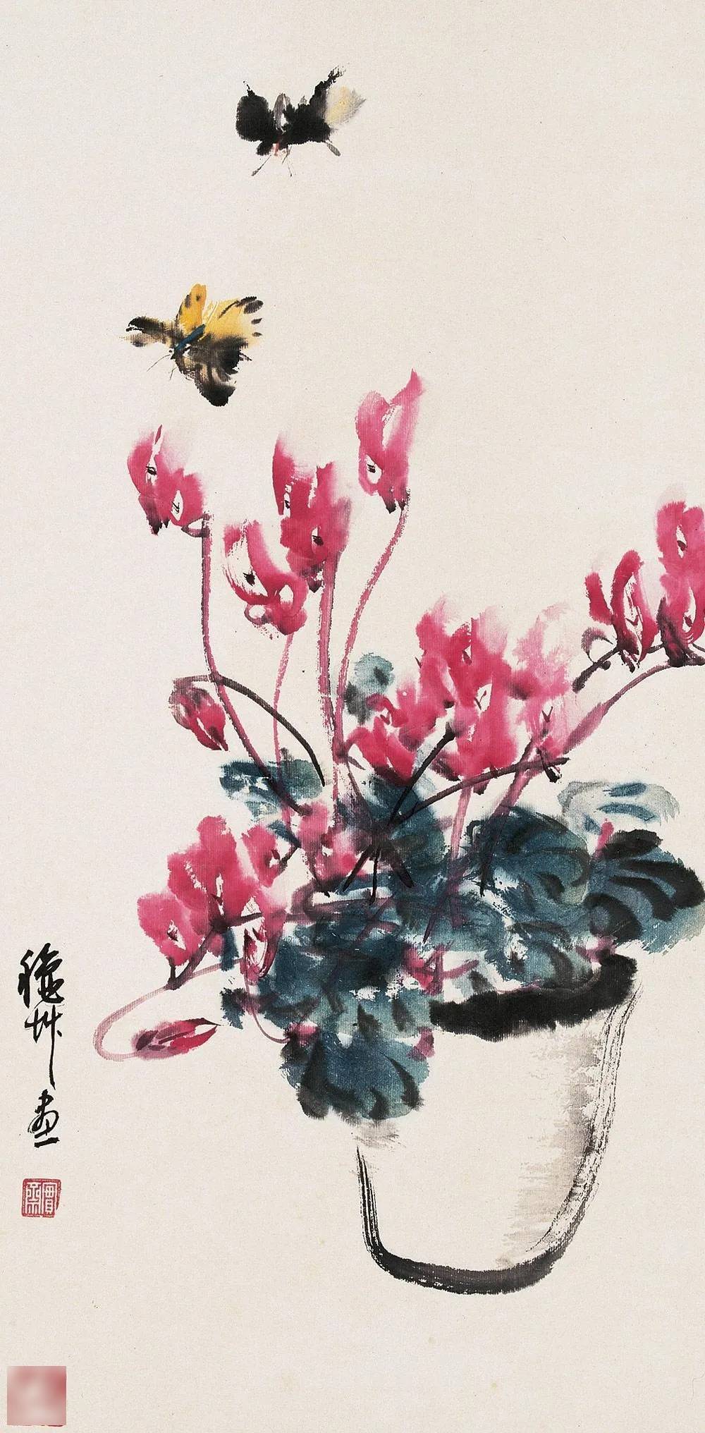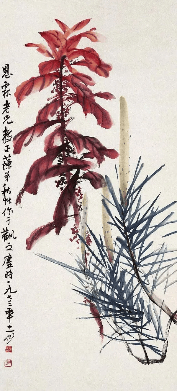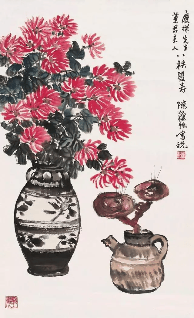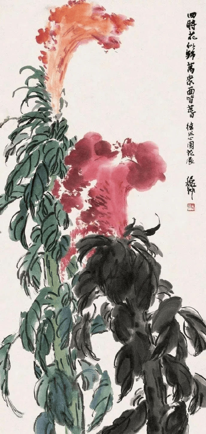 陈秋草的绘画以大写意花鸟画为主,在其作品中,我们不难看出他在中国传统绘画的基础上,加入西方水彩画的光与色,显得十分鲜艳明丽;尤其是他画花卉的时候,笔墨当中加入了大量的水,正是因为这样的运用,让他的花卉倍感鲜嫩水灵!