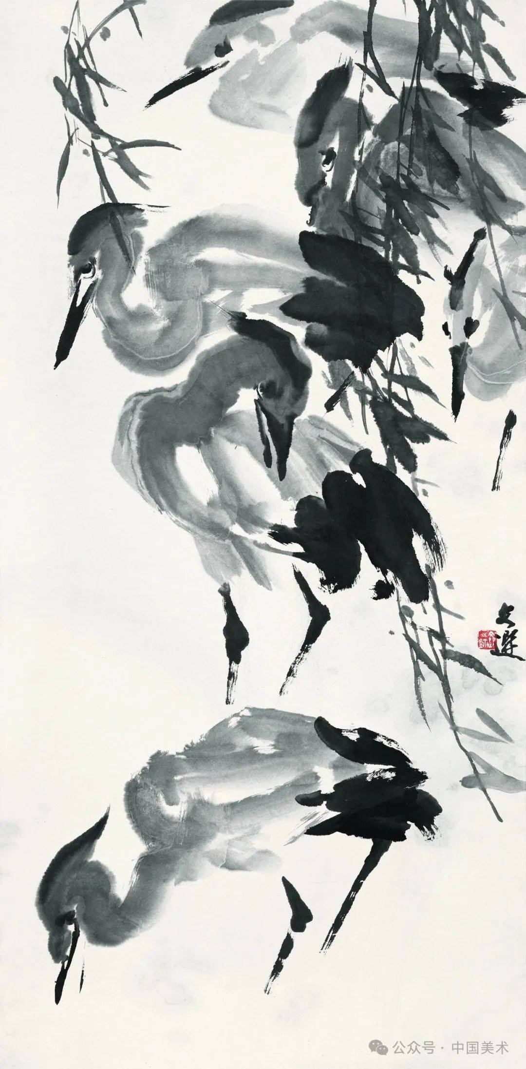 荷塘立鹭 1980年 89x48cm