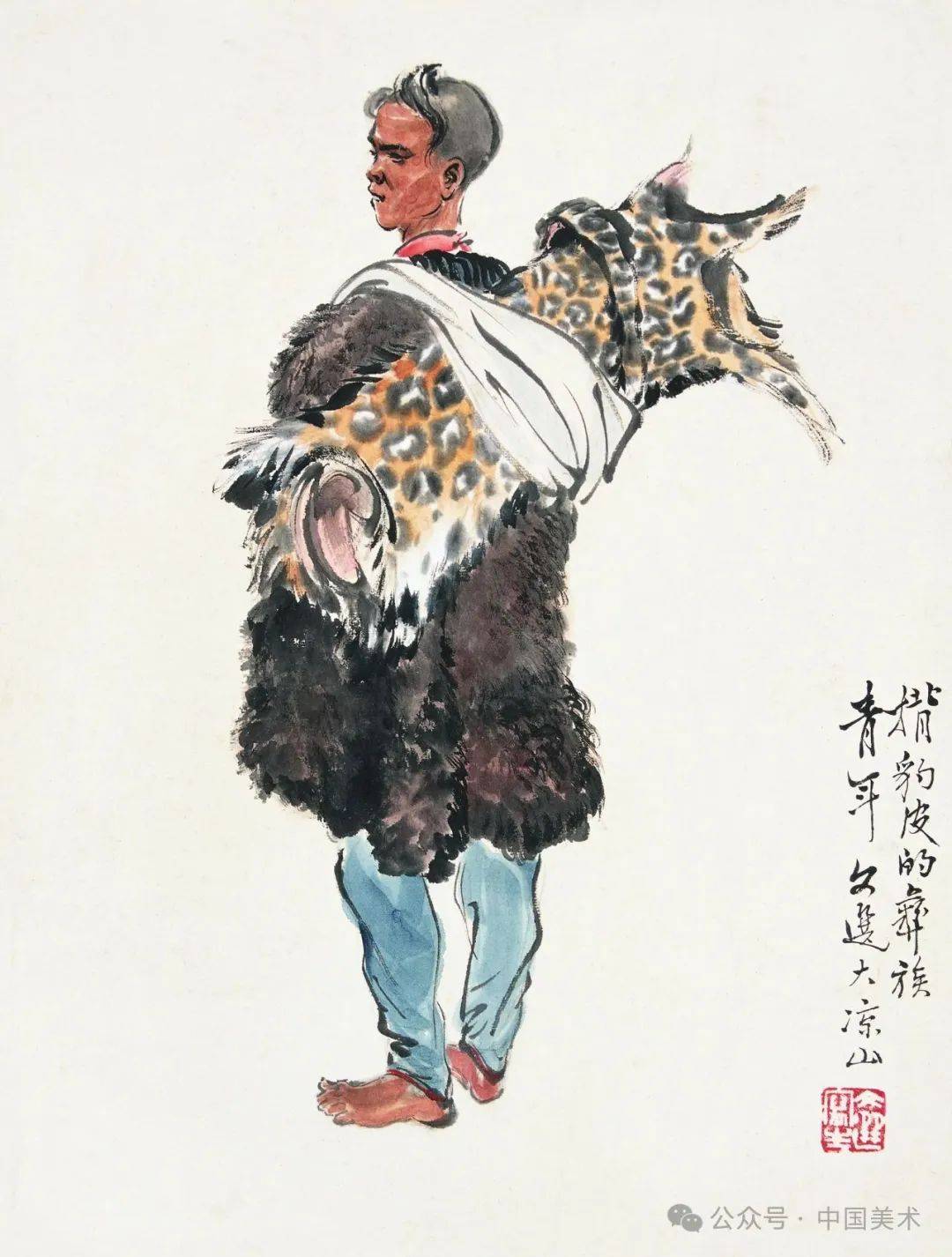 背豹皮的彝族青年(大凉山山写生一)1957年