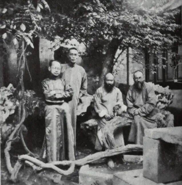 叶恭绰(左一)、王秋湄与张氏昆仲摄于苏州网师园