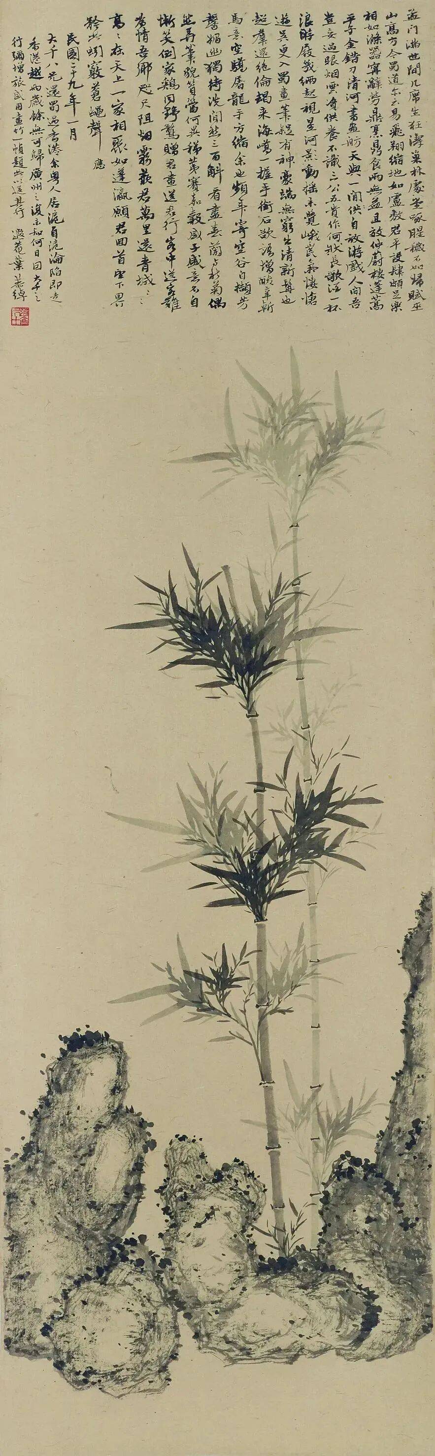 叶恭绰画《竹石图》送给张大千