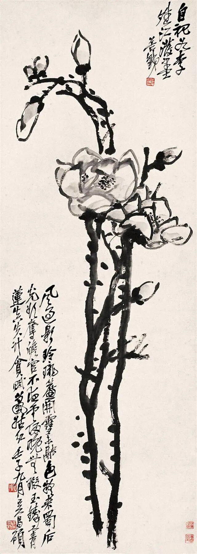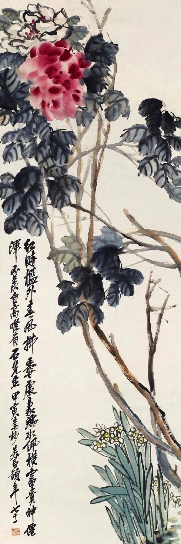 吴昌硕擅长写意花卉,尤爱梅、兰、竹、菊、牡丹、石榴、寿桃等,寓意吉祥又不失文人风骨。
