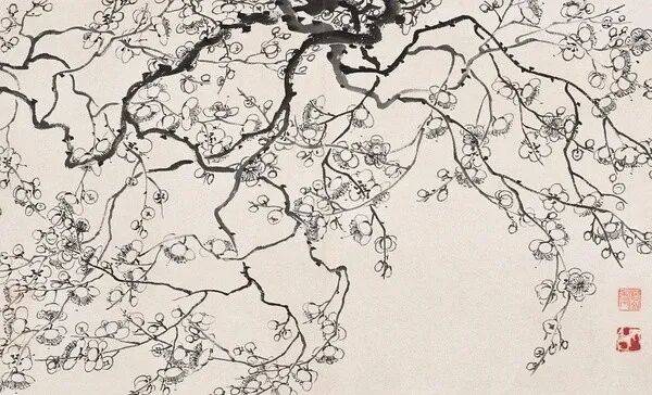 与金农“文人雅梅”的冷逸不同,齐白石出身民间,摹习中不自觉融入湘地花木的鲜活感。金农画梅重“意”轻“形”,偏向孤高脱俗;齐白石早期梅花虽笔法学金农,却在枝干的姿态、花瓣的排布上多了几分山野梅花的朴拙生机,少了些许文人画的清冷疏离。