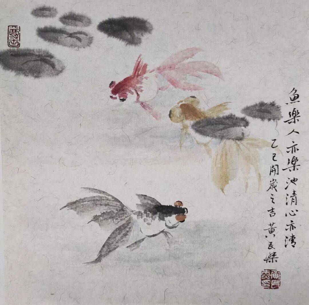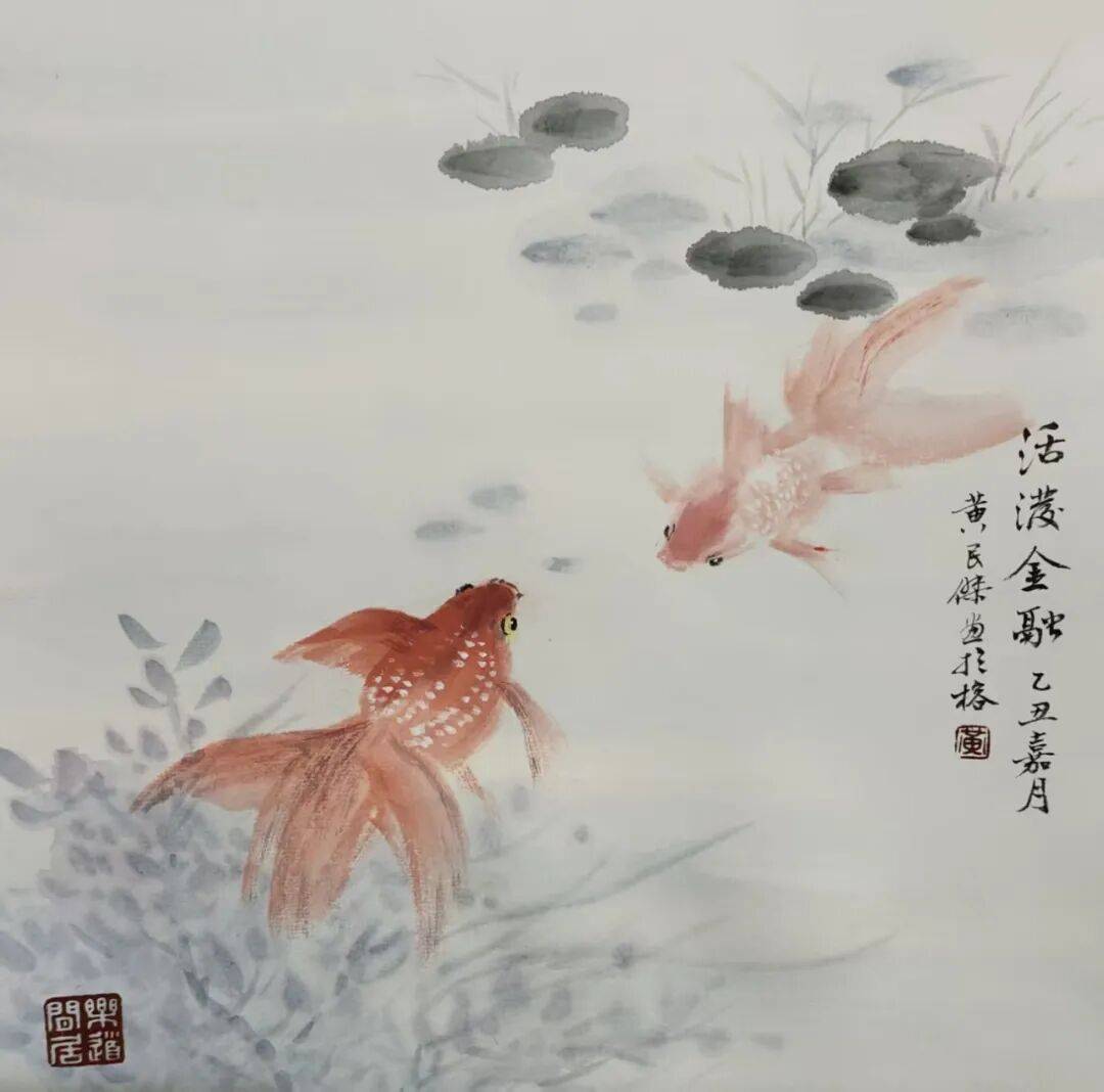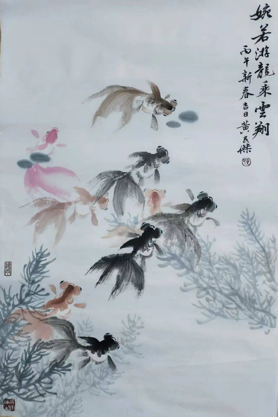 在福州有一位擅长画金鱼的老画家黄民杰先生。黄老师年过花甲,精研中国画数十年,不仅擅长中国传统山水画,而且对金鱼题材也情有独钟。提起福州金鱼,黄老师就打开了话匣:福州连续开展了十一届中国(福州)金鱼文化节、七届金鱼大赛等活动。福州金鱼还受邀参加故宫博物院和恭王府博物馆举办的专场展示活动,“福州金鱼”也被评为国家农产品地理标志产品,誉满中外。从童年开始黄老师就对千姿百态游弋自如的金鱼十分喜爱。从事绘画创作主要是从事中国传统山水画,出版过十几种绘画专著。多年来在山水画创作之余,时常赏鱼画鱼,对金鱼的动态了如指掌,所以寥寥数笔就能画出栩栩如生的金鱼。2025年春节还在福州举办了《年年有余一一黄民杰金鱼画展》。