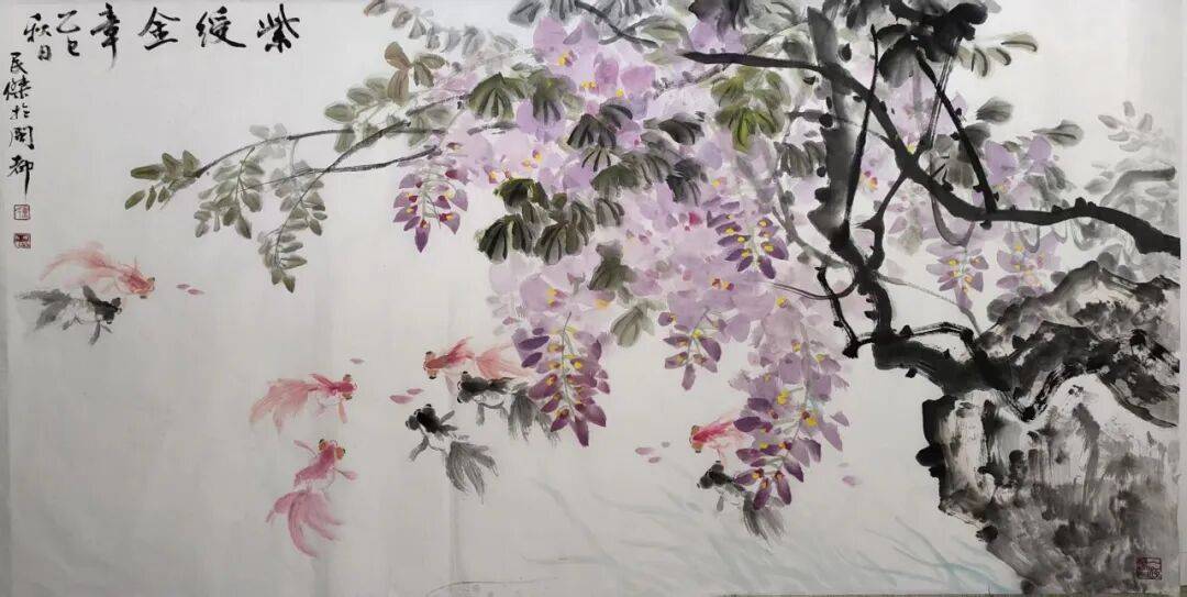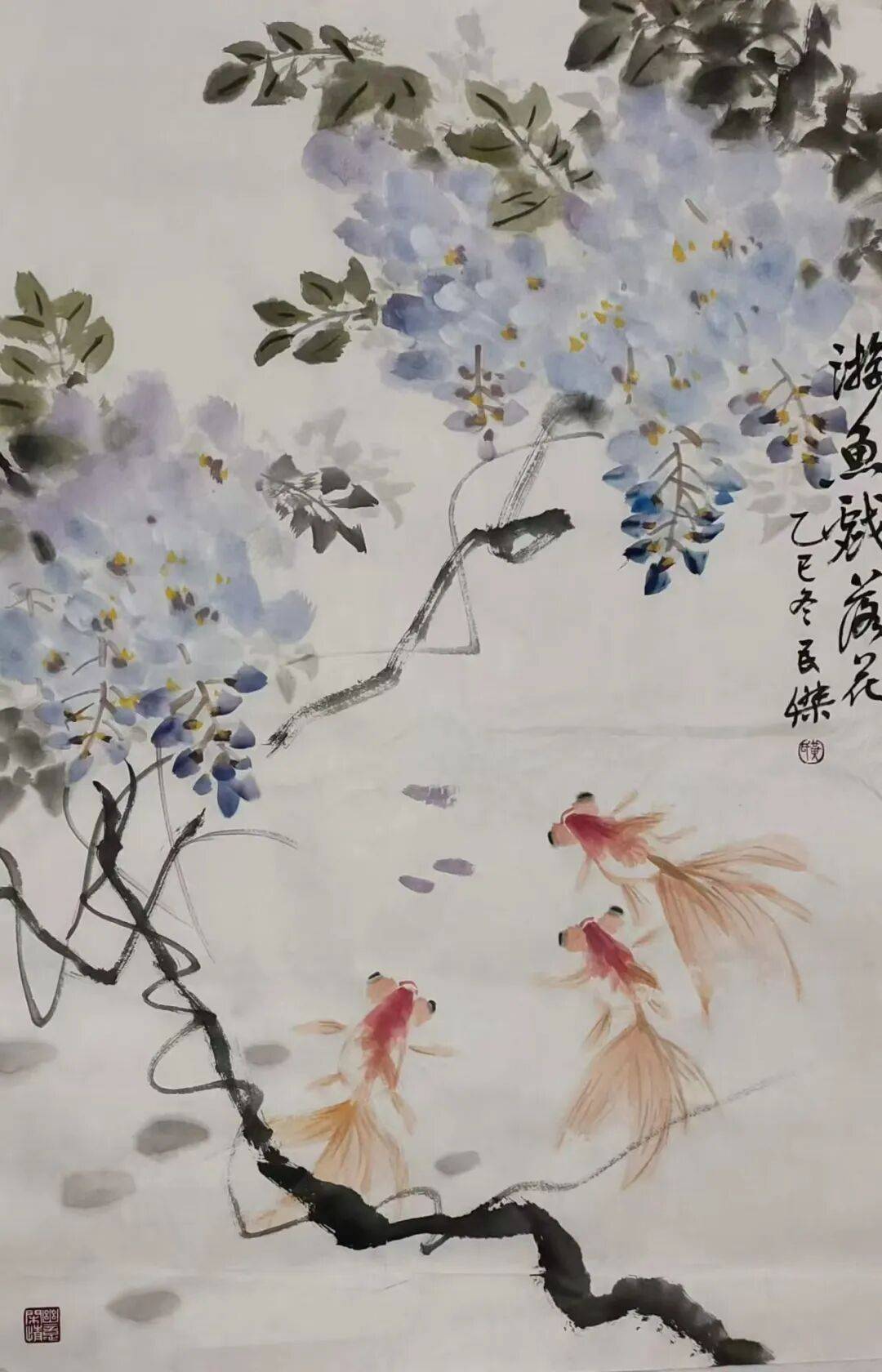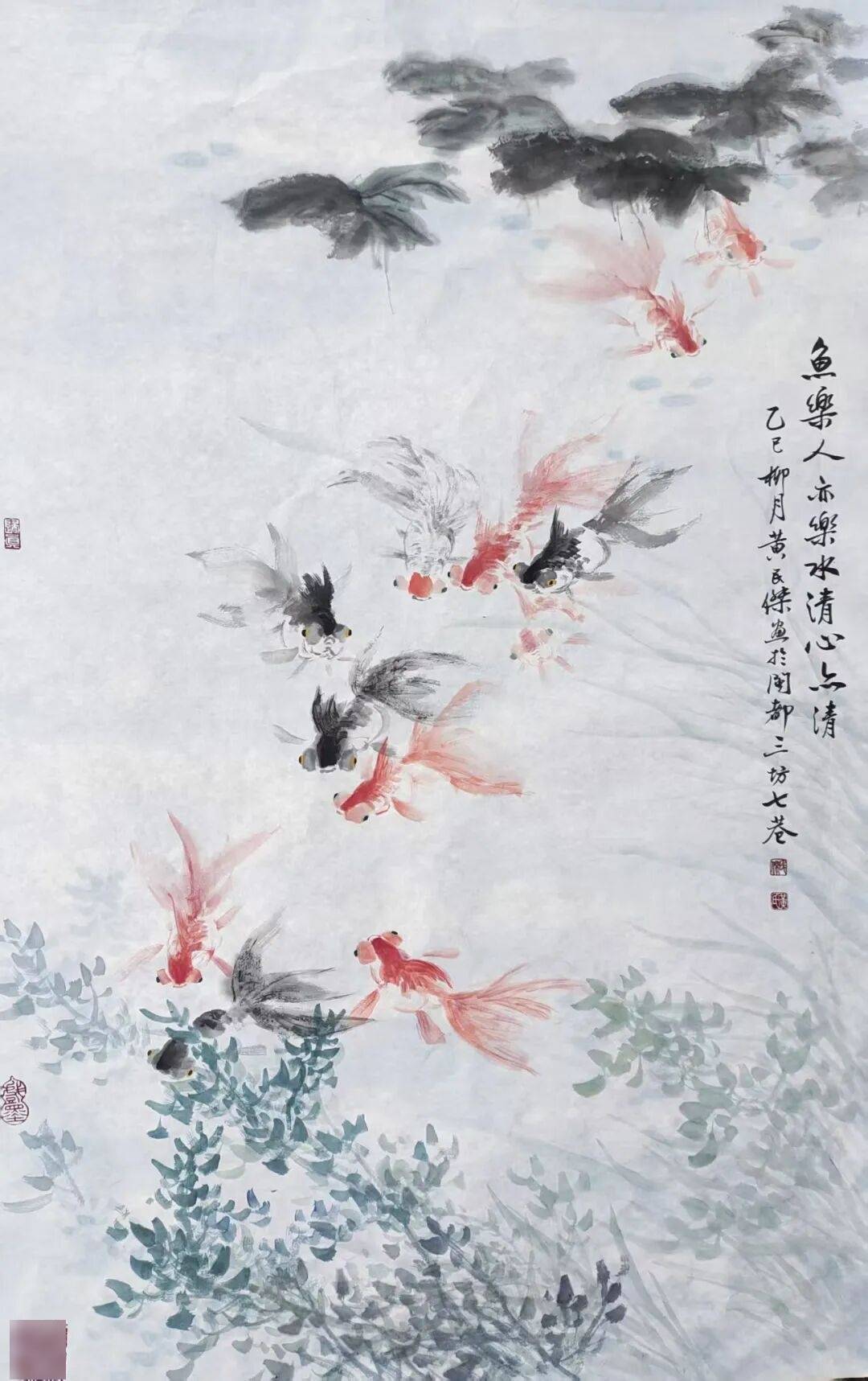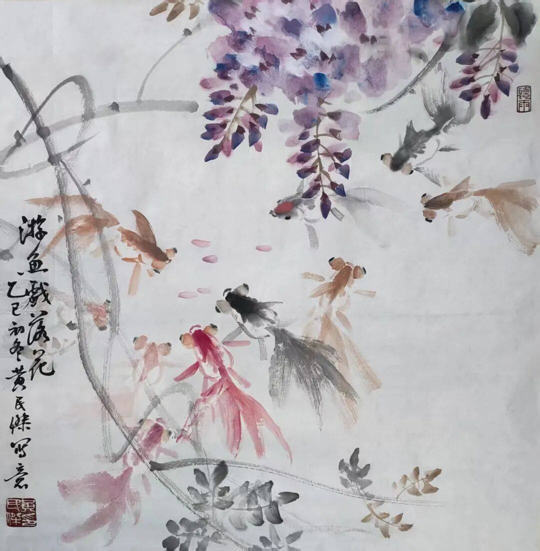 在福州有一位擅长画金鱼的老画家黄民杰先生。黄老师年过花甲,精研中国画数十年,不仅擅长中国传统山水画,而且对金鱼题材也情有独钟。提起福州金鱼,黄老师就打开了话匣:福州连续开展了十一届中国(福州)金鱼文化节、七届金鱼大赛等活动。福州金鱼还受邀参加故宫博物院和恭王府博物馆举办的专场展示活动,“福州金鱼”也被评为国家农产品地理标志产品,誉满中外。从童年开始黄老师就对千姿百态游弋自如的金鱼十分喜爱。从事绘画创作主要是从事中国传统山水画,出版过十几种绘画专著。多年来在山水画创作之余,时常赏鱼画鱼,对金鱼的动态了如指掌,所以寥寥数笔就能画出栩栩如生的金鱼。2025年春节还在福州举办了《年年有余一一黄民杰金鱼画展》。