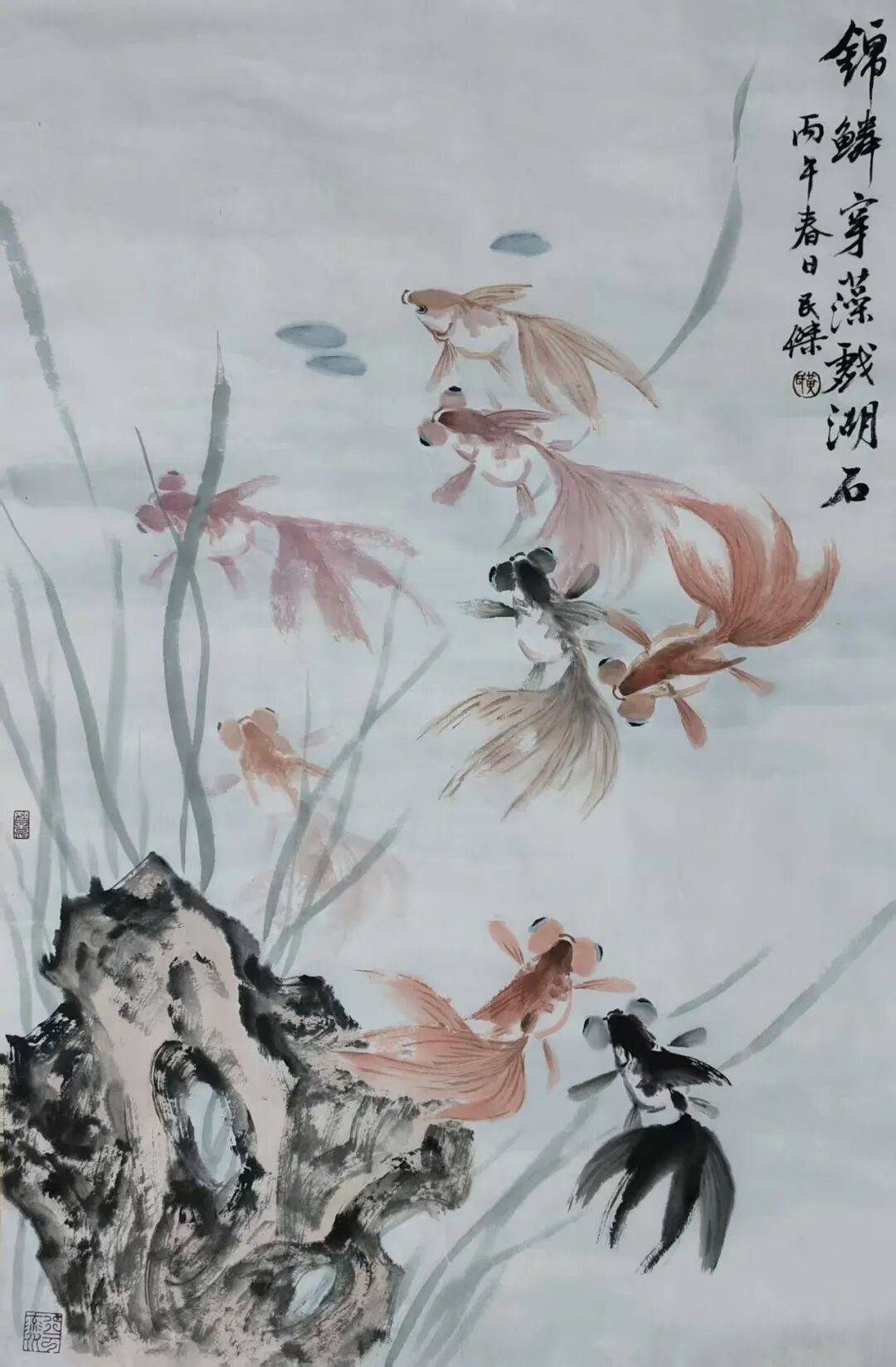 黄民杰先生笔下的金鱼,活灵活现,千姿百态,令人陶醉不已,仿佛拥有了生命的灵动。每一条金鱼都被赋予了鲜明的个性和独特的神韵。它们或悠然自得地游动,或嬉戏打闹,或静静地休憩,那姿态仿佛在诉说着一个个动人的故事。