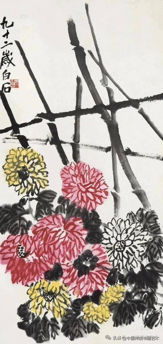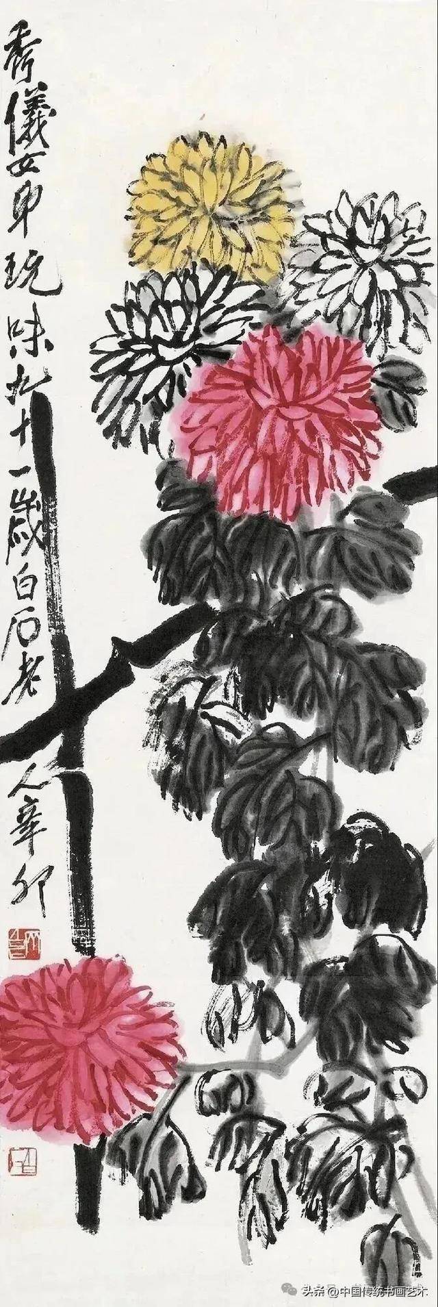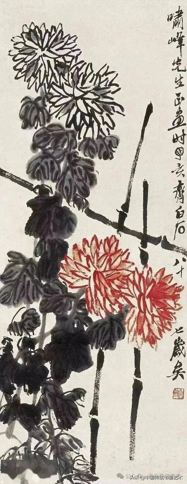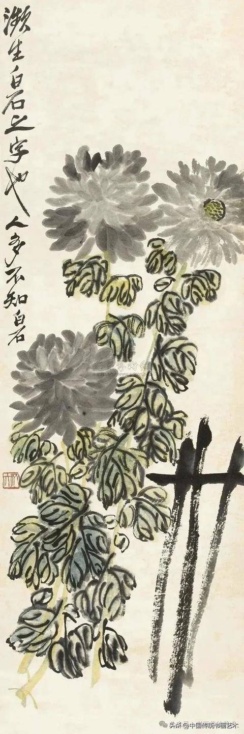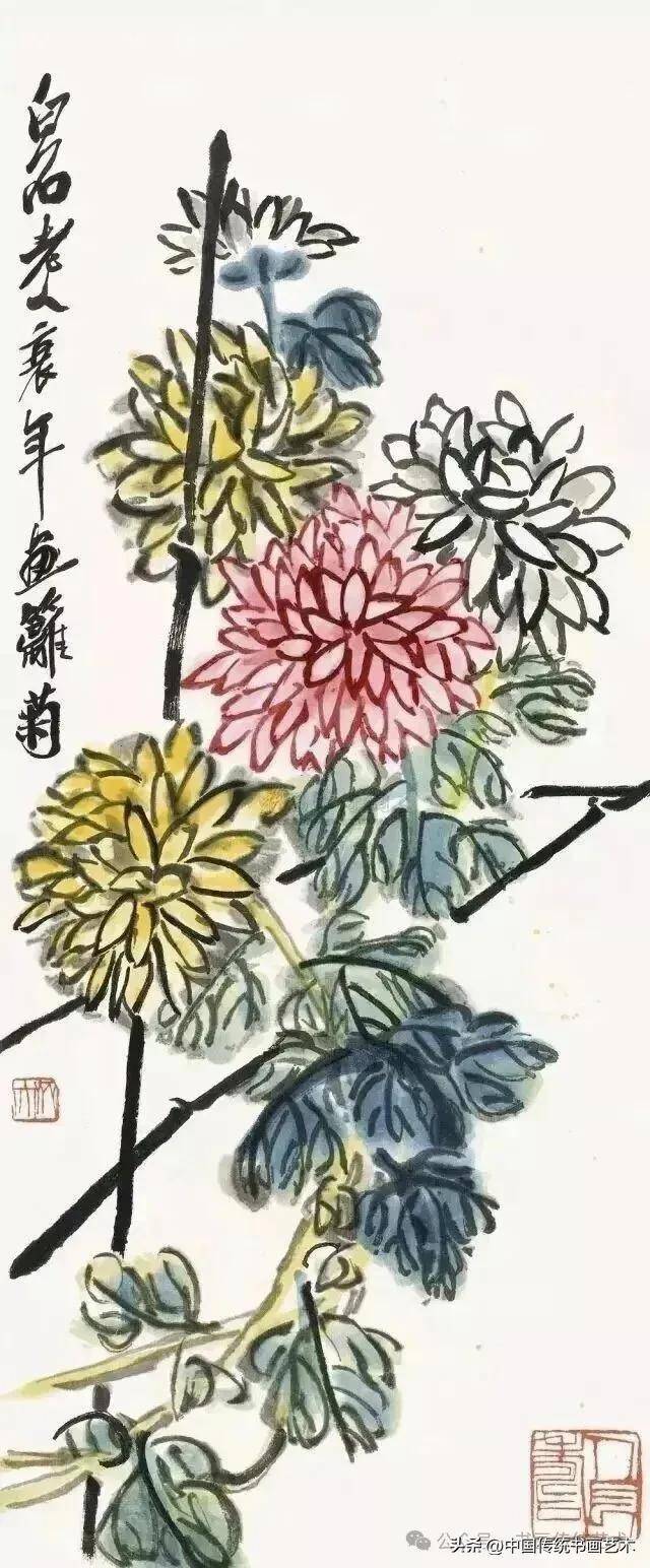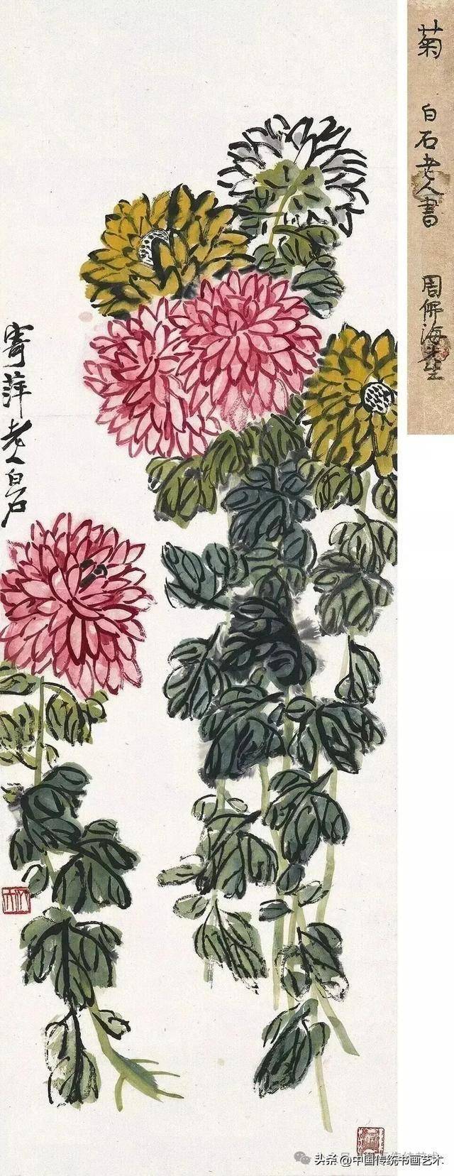 闲时收集齐老菊花图60幅,现分享与大家共同学习,齐白石专辑持续更新中……