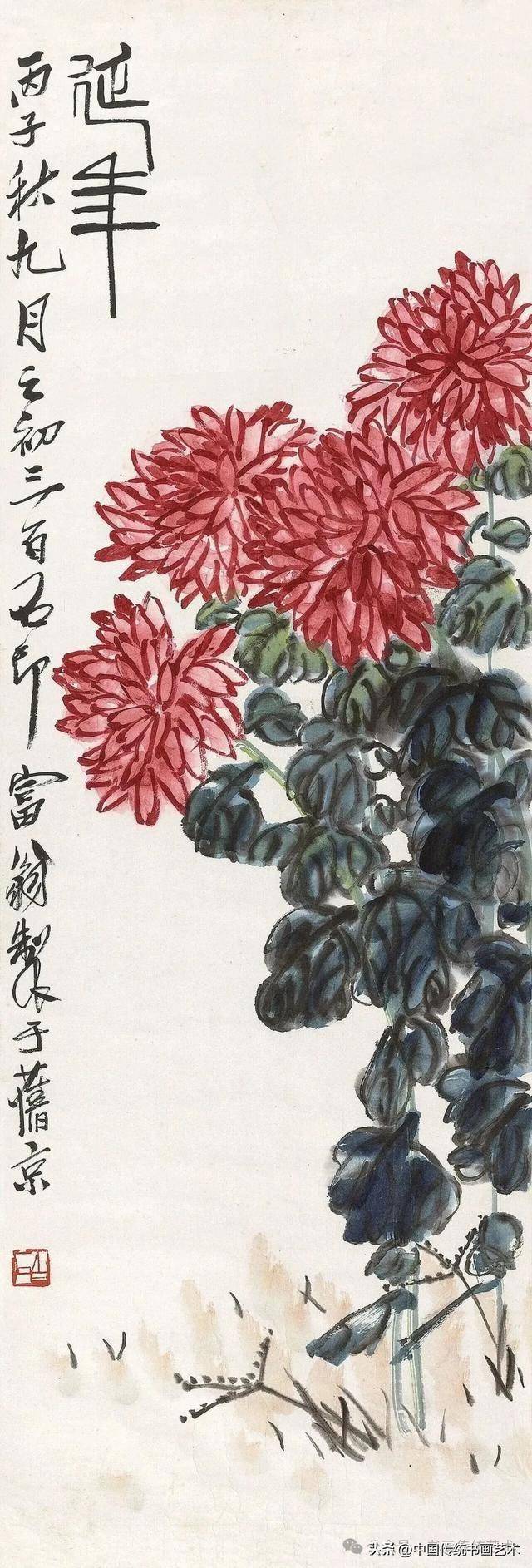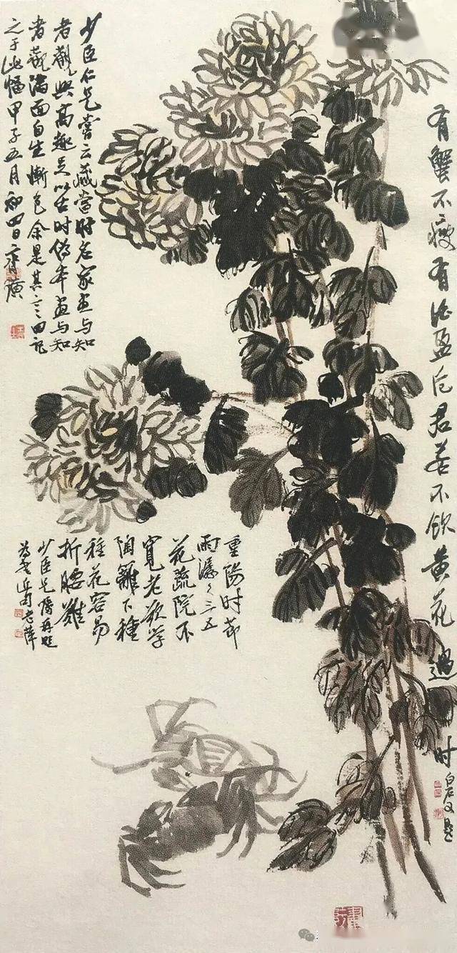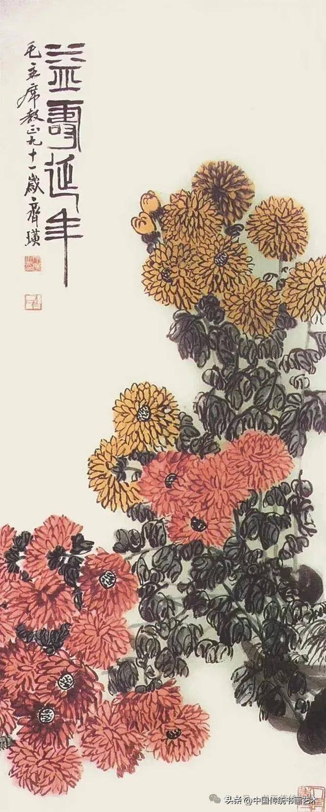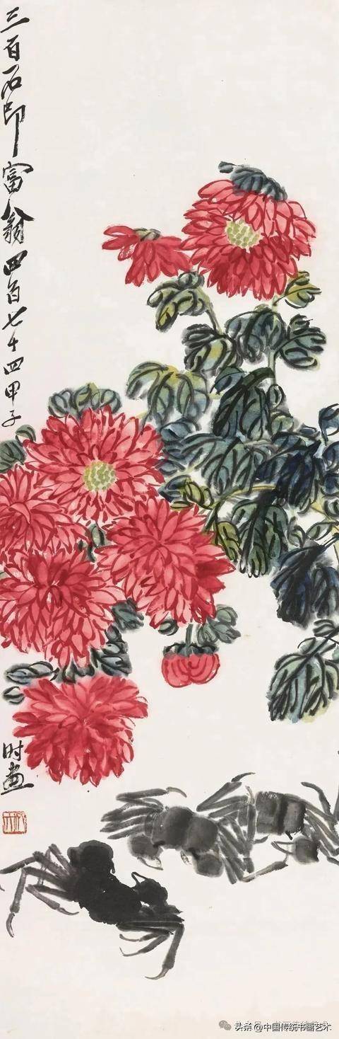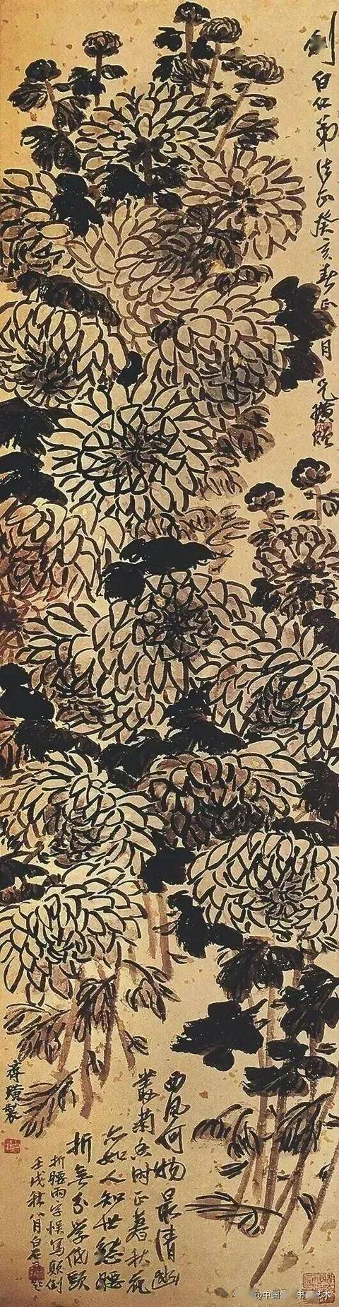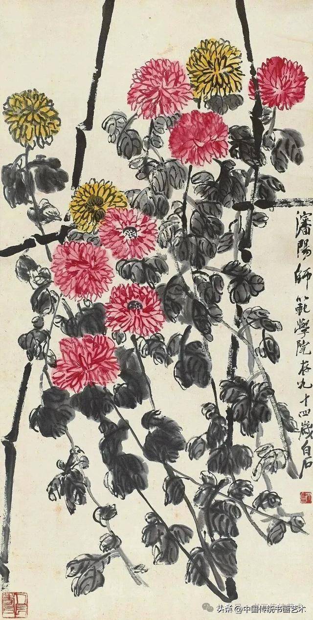 闲时收集齐老菊花图60幅,现分享与大家共同学习,齐白石专辑持续更新中……