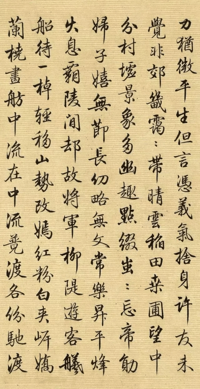 【4】力犹微。平生但言凭义气,捨身许友未觉非。郊畿霭霭带晴云,稻田桑圃望中分。村墟景象多幽趣,㸃缀蚩蚩忘帝勋。妇子嬉无节,长幼畧无文。常乐昇平烽火息,灞陵閒却故将军。栁堤逰客舣船待,一棹轻移山势改。嫣红粉白夹岸娇,兰桡画舫中流在。中流竞渡各纷驰,渡