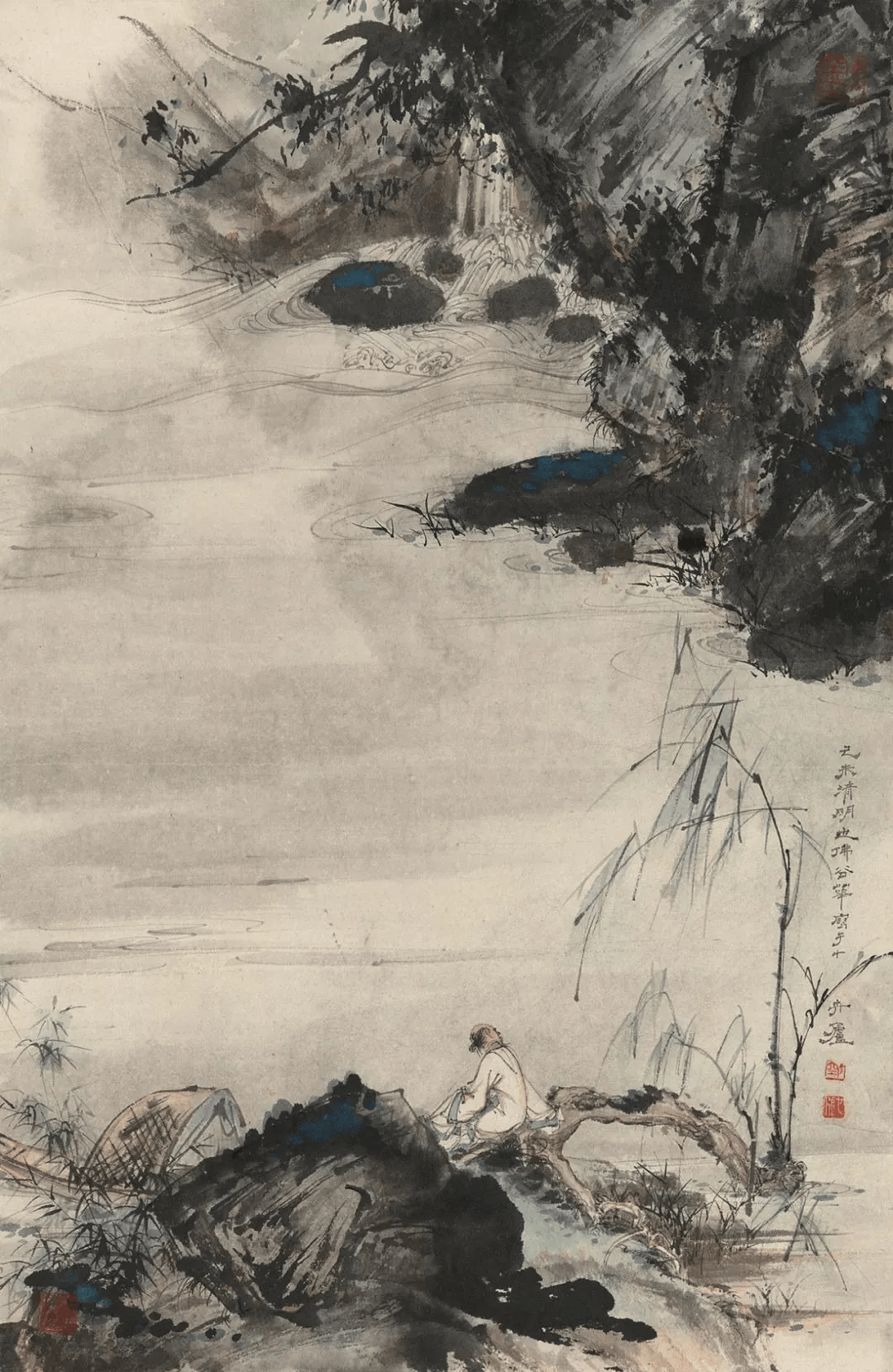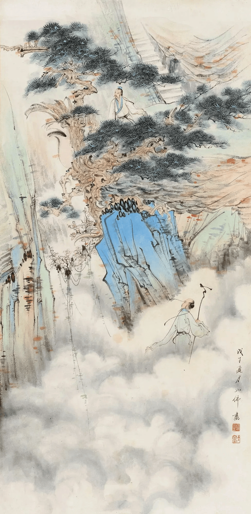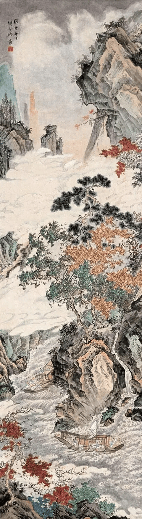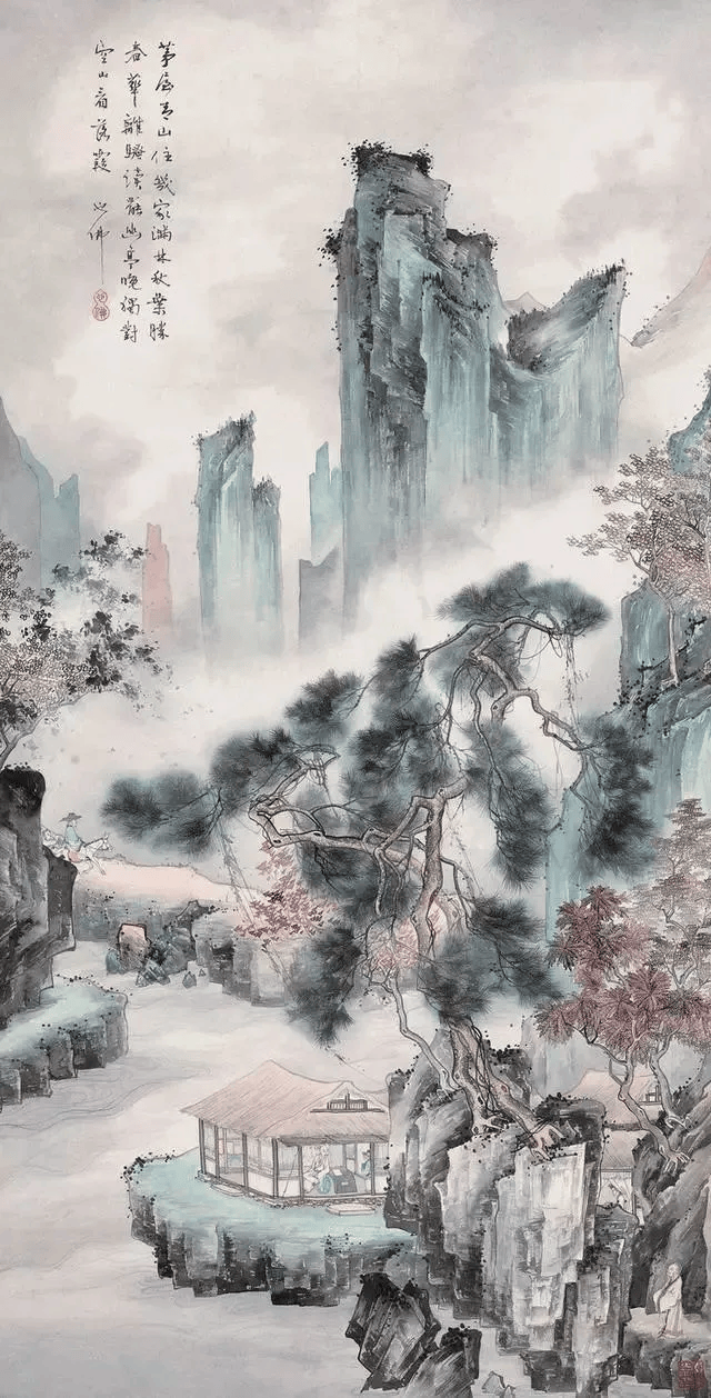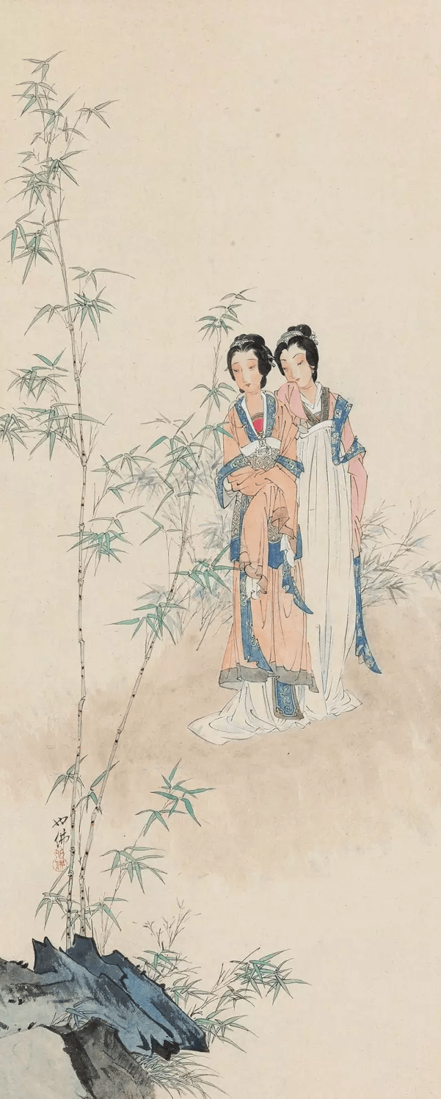 胡也佛不仅精于仕女画,其山水画同样具有极高的艺术价值。胡也佛一生低调内敛,不事张扬,只以笔墨立身。世人惊艳于他笔下的绮丽风光,却少有人知晓,那活色生香的背后,是日复一日的苦练,是对传统工笔最虔诚的坚守与传承。他以一根细如游丝的笔,勾勒出一个时代的风情,也留下了中国人物画里难以复制的传奇。