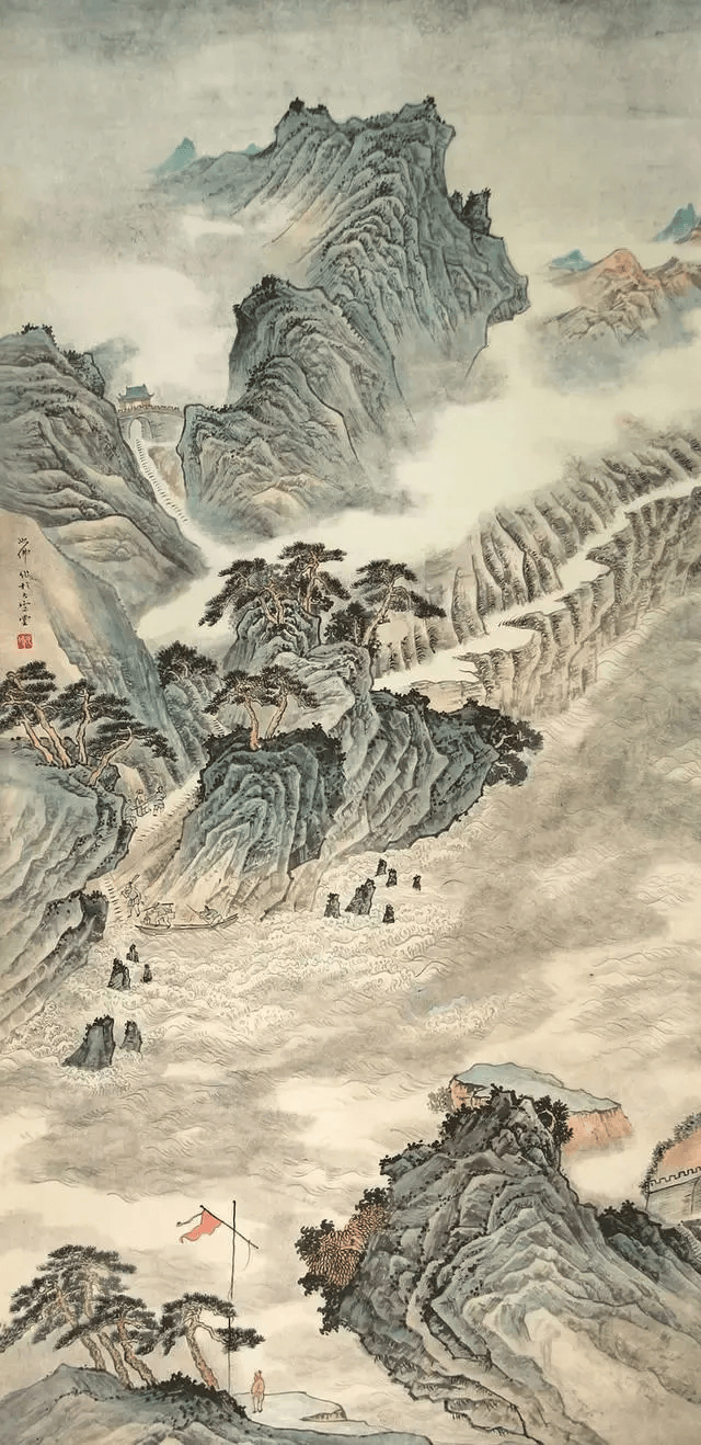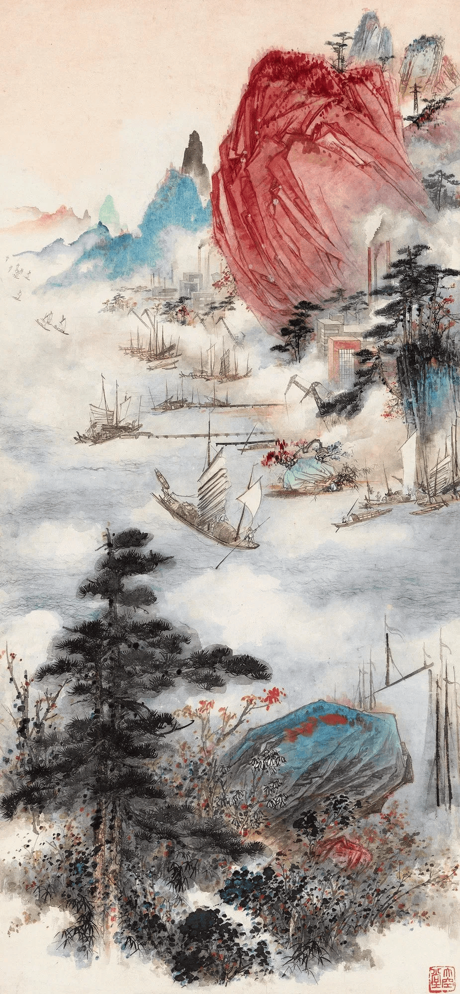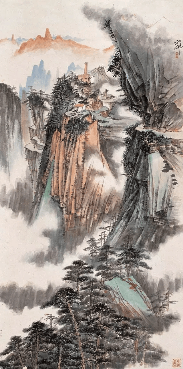 他的山水作品兼具南派的细腻与北派的豪放,既避免了南派的甜熟,又克服了北派的简练刻板,形成刚柔并济、隽逸过人的艺术风貌。晚年受张大千影响,进一步将浓重色彩运用于传统水墨之中,使作品在保持文人画高古典雅的同时,焕发出时代气息。部分作品还结合写实题材,描绘新中国建设场景,如山路盘绕、卡车穿行、山顶建房等,突破了传统山水画的局限,体现出对人文与自然关系的深刻思考。